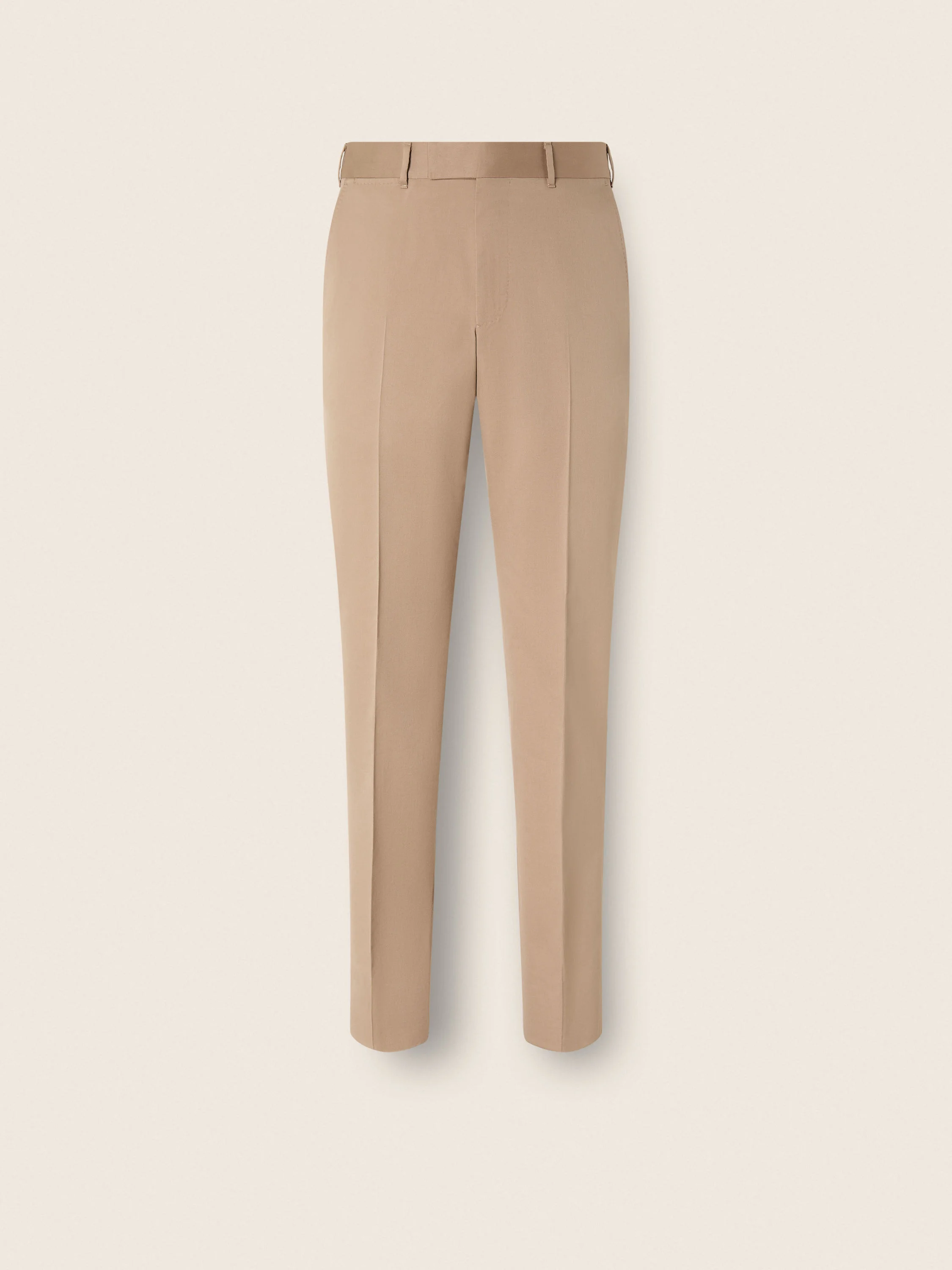 Elevate your formal ensembles with these flat-fronted pants, crafted from beige Centoventimila cotton-wool. INFO These beige pants feel super-smooth and lightweight against the skin with their superior Centoventimila cotton-wool fabric. Fitting slim through the leg and flat across the front for an impeccably smart, streamlined look, they fasten with a discreet hook closure. PRODUCT CODE 344F02A3-75N5N2 MATERIALS AND CARE 52% Cotton; 48% Wool Centoventimila – Italian for 120,000 – is named after its high thread count. Garments crafted from this fabric are extremely lightweight and have a soft, silk-inspired hand feel. Do not wash. Do not bleach. Do not tumble dry. Iron at max 110°C. Professional dry cleaning in tetrachloroethene and hydrocarbons, mild process. FIT AND PRODUCT DETAILS • Slim fit • Tailoring pants • 19 cm hem • Hook, zip and button closure • Welt pockets • Unlined, canvas construction • Flat front style Pants hems are unfinished. You can bring your pants to our boutiques for alterations.