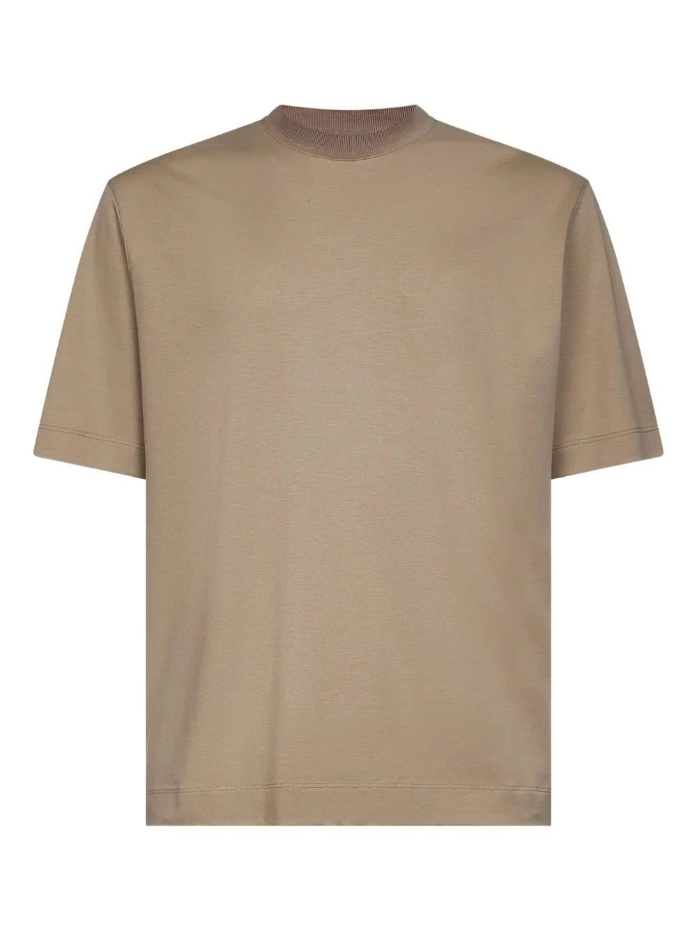 crew-neck T-shirt Highlights - Sesame beige - Ribbed trim - Applique detail - Short sleeves - Straight hem Made in Italy Composition Cotton 70%, Silk 30%