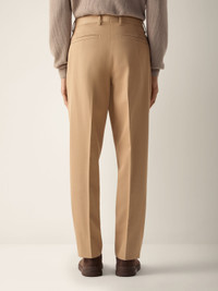 Single pleats give these beige cotton-wool pants an elegant drape. INFO Crafted from a refined blend of cotton and wool in ZEGNA's beautiful beige colorway, these pants offer a relaxed take on smart tailoring with their elegant front pleats. Finished with slanted pockets on the hips and a welt pocket on the back. PRODUCT CODE UHI04A3-TP45-N03 MATERIALS AND CARE Main body: 57% Cotton; 43% Wool Lining: 100% Cotton Do not wash. Do not bleach. Do not tumble dry. Iron at max 110°C. Professional dry cleaning in hydrocarbons, mild process. Wash inside out. Wash separately. FIT AND PRODUCT DETAILS • Pleated fit • 19.5 cm open hem • Zip and button closure • Slanted pockets and back welt pocket • One pleat pants