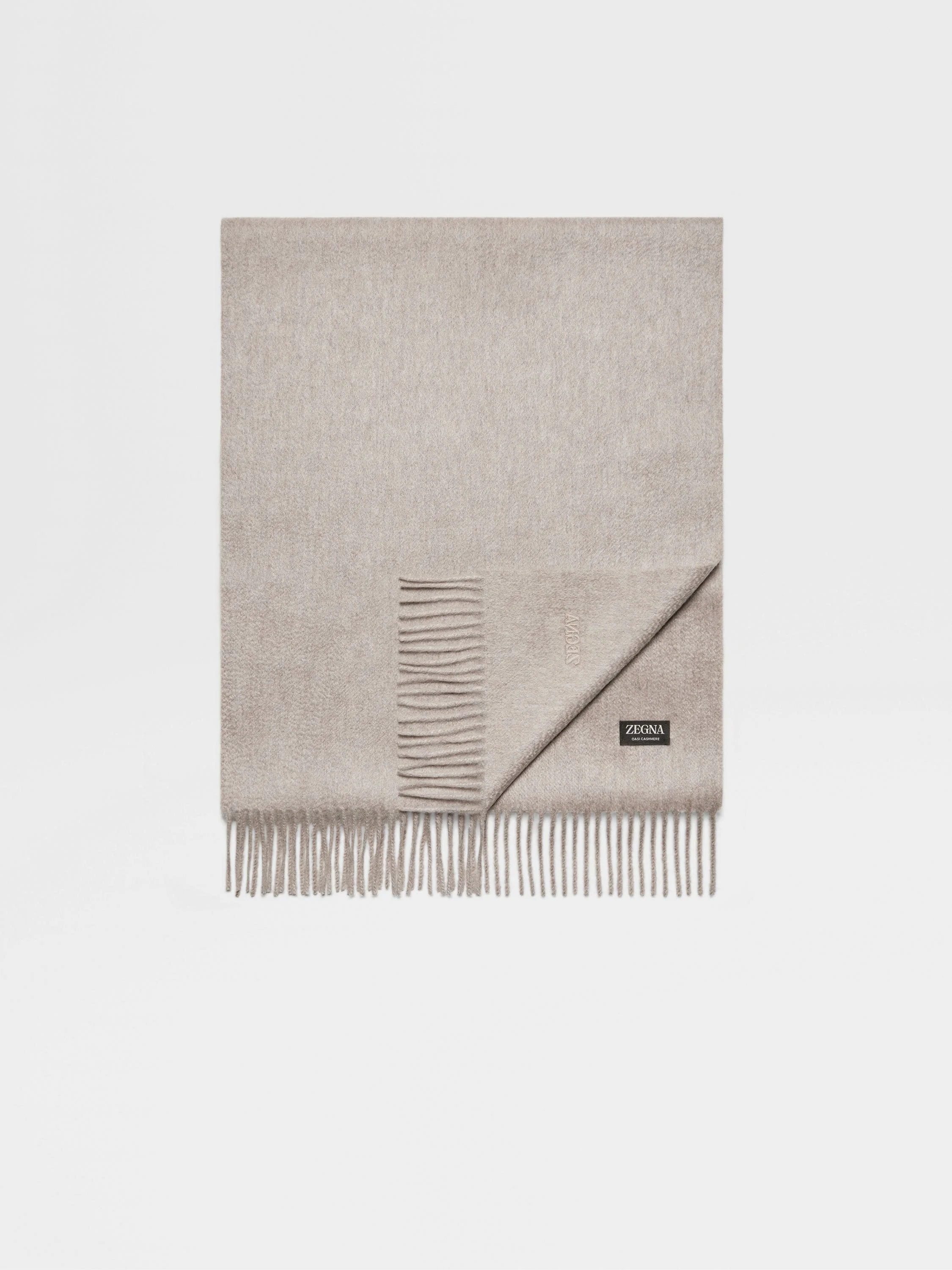 The beige Oasi Cashmere scarf is a luxurious choice of accessory. INFO Zegna's uncompromising quality standards extend to the simplest accessories: the beige Oasi Cashmere scarf is knit from one of the brand's softest and most exclusive materials. This lush cashmere scarf is presented in a solid colorway and accentuated with the tonal leather Zegna 232 Road Brand Mark. PRODUCT CODE Z8L41SA8-26N-BE1 MATERIALS AND CARE 100% Cashmere The inspiration behind this Oasi Cashmere Collection garment was Born in Oasi Zegna, our 100km² natural territory and the home of our values. It's crafted from Oasi Cashmere fibres, which ZEGNA commits to certifying as traceable from 2024. The Oasi Cashmere Collection follows in the footsteps of our founder, who envisioned a vertically integrated system of producing textiles. Do not wash. Do not bleach. Do not tumble dry. Do not iron. Professional dry cleaning in tetrachloroethene and hydrocarbons, mild process. FIT AND PRODUCT DETAILS • Size: 180 x 36 cm / 70.9 x 14.2 in • Tonal leather Zegna 232 Road Brand Mark • Oasi Cashmere label • Made in Italy