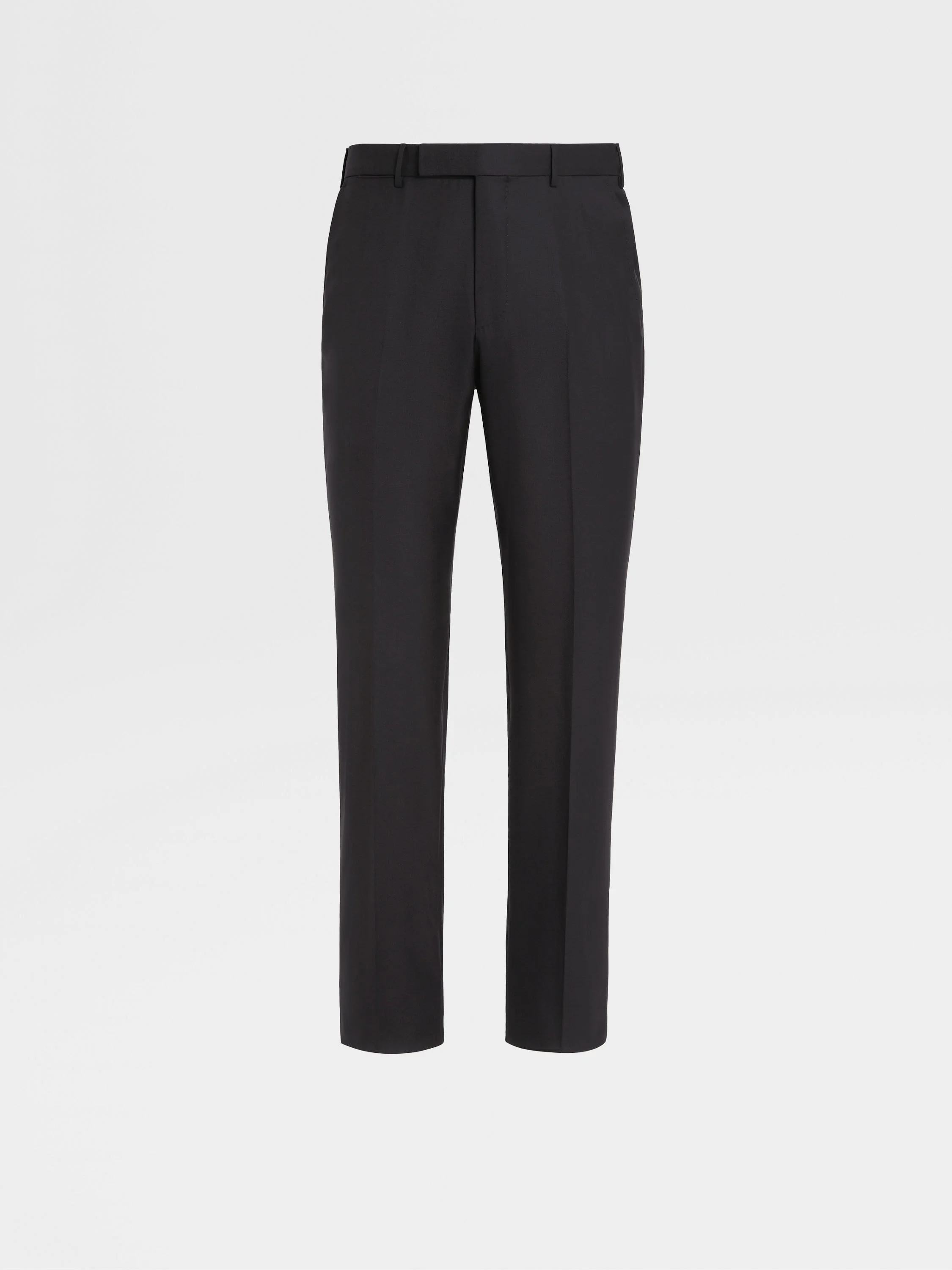The black 15milmil15 wool tailoring pants showcase one of Zegna's most precious fabrics. INFO Crafted from the brand's super-fine, 15-micron wool fibers, the luxurious material of the black 15milmil15 wool tailoring pants is the perfect match for sophisticated garments. The ultra soft and lightweight material is paired with a slim fit to create a sleek, contemporary silhouette. PRODUCT CODE C48F01-75TB12 MATERIALS AND CARE 100% Wool 15milmil15 is crafted from super-fine wool that measures just 15.2 micron in diameter. Incredibly soft and lightweight, it is well suited for sophisticated garments. Do not wash. Do not bleach. Do not tumble dry. Iron at max 110°C. Professional dry cleaning in tetrachloroethene and hydrocarbons, mild process. FIT AND PRODUCT DETAILS • Slim fit • Tailoring pants • 18.5 cm hem • Button and zip closure • Slanted pockets • Flat front style • Unlined, canvas construction • Model is 186 cm tall (6.1 feet) and wears an Italian size 48.