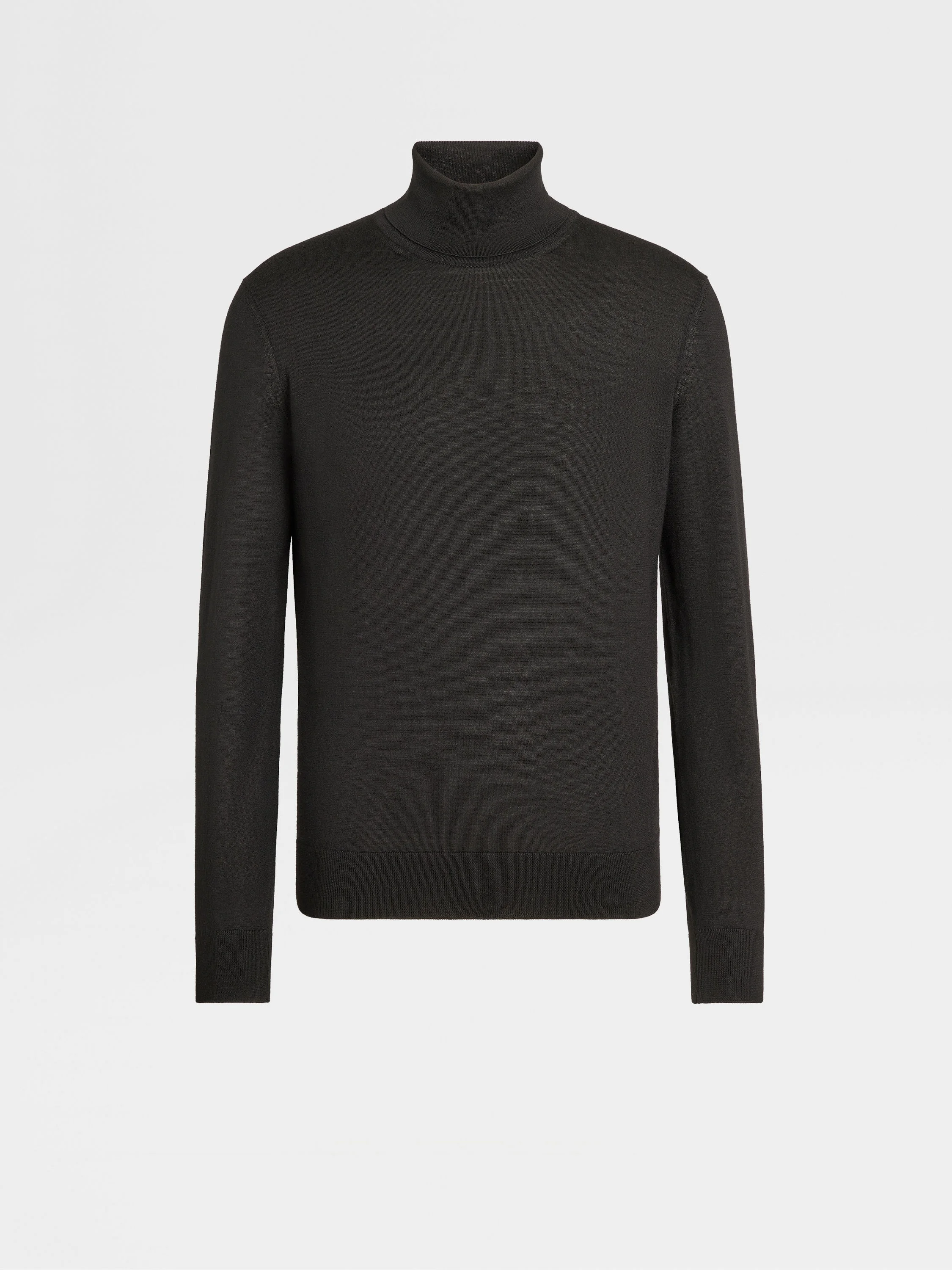 The black Cashseta Light turtleneck brings together the best of cashmere and silk. INFO The brilliant finish of Zegna's Cashseta Light fabric is the perfect match for the refined turtleneck. A classic shade of black complements the soft, natural knit. A staple of sophisticated wardrobes, the turtleneck creates a sleek silhouette. PRODUCT CODE E8J00-120-K09 MATERIALS AND CARE 70% Cashmere; 30% Silk Combining the exclusive characteristics of Premium Cashmere with an uncommon lightness, Cashseta Light is an ultra-fine yarn obtained from a blend of precious white cashmere, collected only from selected Mongolian goats, and lustrous, fine silk. Cashseta is yarn-dyed, a process that produces a micro mélange effect, thus rendering each garment truly unique. Dry clean with hydrocarbon solvents. Do not bleach. Do not tumble dry. Regular ironing, steam or dry, may be performed at low setting (110°C / 230°F). FIT AND PRODUCT DETAILS • Long sleeves • Ribbed cuffs and bottom • High neck • Regular fit • Model is 188 cm tall (6.2 feet) and wears an Italian size 48.