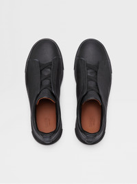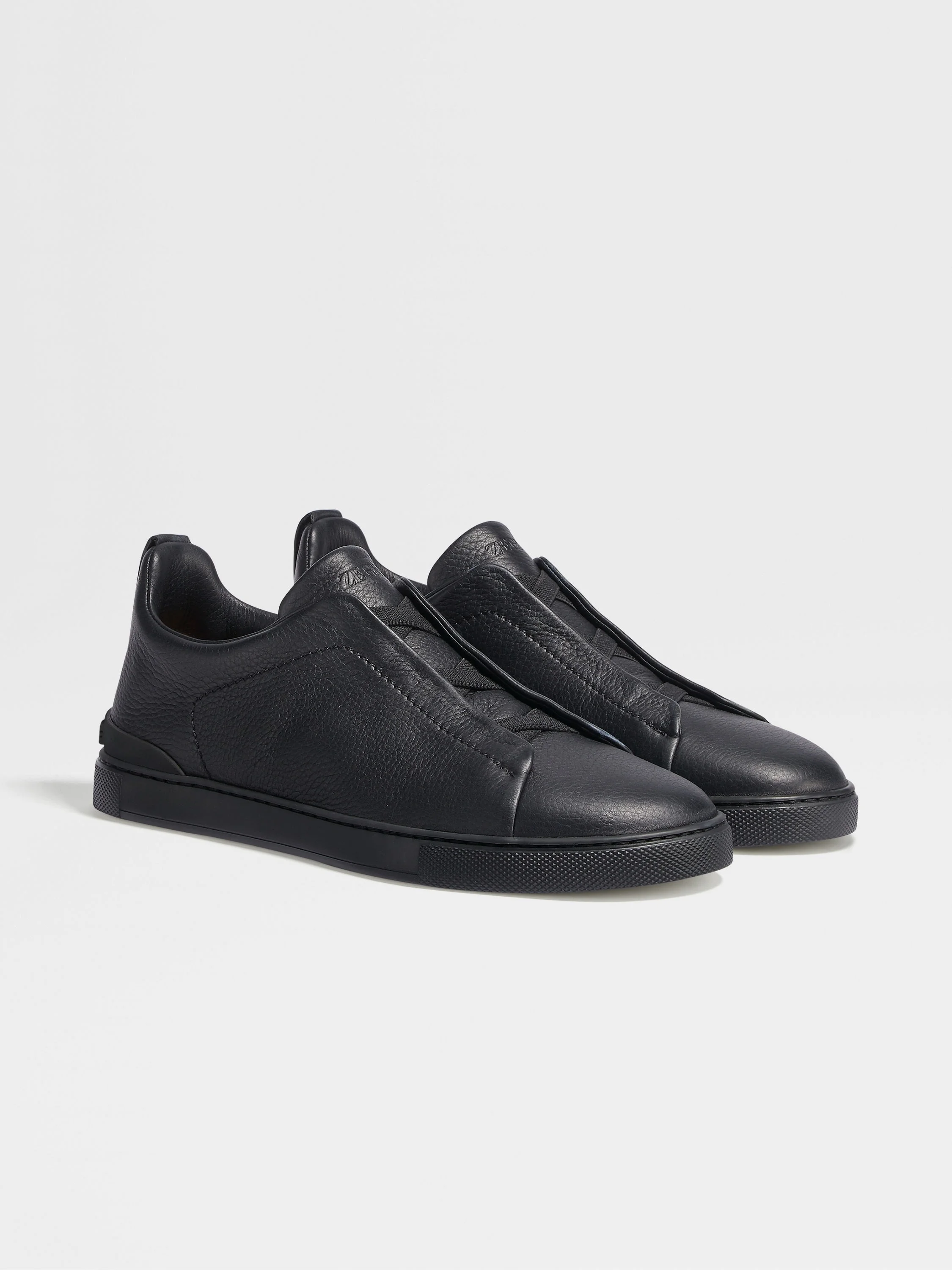 The black deerskin Triple Stitch™ low top sneakers represent everyday luxury. INFO The black deerskin Triple Stitch™ low top sneakers are a sophisticated take on casual footwear. The sneakers' signature triple-crossed elastics evoke the hand-stitching on our tailored jackets. The lightweight design is paired with a matching rubber sole. PRODUCT CODE LHCVO-S4667Z-NEE MATERIALS AND CARE Deerskin Clean with a soft cloth. Avoid contact with abrasives, water and substances containing alcohol, such as perfumes, solvents, etc. In case of contact with water, it is important to let the footwear dry completely before cleaning. Clean the rubber soles with a product specifically designed for cleaning rubber. Store in the included dust bag in a cool, dry place. FIT AND PRODUCT DETAILS • Crossing elastics • Leather lining • Sanitized® insole • Tonal rubber sole • Tonal Zegna 232 Road Brand Mark on the heel tab • Made in Italy • Comes with a shoe bag We want every pair of Triple Stitch™ sneakers to fit perfectly anytime, anywhere, anyplace. To find your perfect fit, we recommend going down a half-size compared to your usual shoe size. Please note that Zegna uses UK sizing. For further information, please contact us via our customer service channels or by visiting the nearest Zegna flagship store.