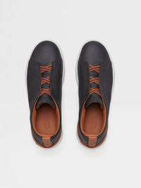 The black deerskin Triple Stitch™ sneakers' super soft, high-quality material gives them a unique and distinguished appearance. INFO The black deerskin Triple Stitch™ low-top sneakers are mounted on an extra-light, white rubber sole. The brand’s signature triple-crossed elastic detail ensures an easy slip-on fit, while evoking the traditional hand-stitching of tailored jackets to symbolize and honor Zegna’s legacy of fine craftsmanship. Foliage-colored leather lining and the Zegna 232 Road Brand Mark complete the design. PRODUCT CODE LHCVO-S4667Z-SNE MATERIALS AND CARE Deerskin Clean with a soft cloth. Avoid contact with abrasives, water and substances containing alcohol, such as perfumes, solvents, etc. In case of contact with water, it is important to let the footwear dry completely before cleaning. Clean the rubber soles with a product specifically designed for cleaning rubber. Store in the included dust bag in a cool, dry place. FIT AND PRODUCT DETAILS • Crossed elastics • Zegna 232 Road Brand Mark • Foliage-colored leather lining • Extra-light white rubber sole • Sanitized® removable footbed • Made in Italy • Comes with a shoe bag We want every pair of Triple Stitch™ sneakers to fit perfectly anytime, anywhere, anyplace. To find your perfect fit, we recommend going down a half-size compared to your usual shoe size. Please note that Zegna uses UK sizing. For further information, please contact us via our customer service channels or by visiting the nearest Zegna flagship store.