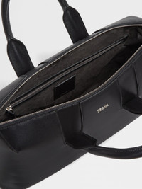 The black leather business bag keeps your documents and electronics secure. INFO The black leather business bag is made from pure calf leather and set off with glazed silver finishes. This larger version of the leather business bag is ideal for travel or for busy days around town. It zips shut and is lined with durable, dark grey polyester. PRODUCT CODE LHGRN-C2226Z-NER MATERIALS AND CARE Main body: Calf Leather Lining: Polyester Protect from moisture and do not place near direct sources of heat. Clean with a soft cloth. Do not use solvents or polishes. Avoid contact with cosmetics, perfumes and hand lotions and sanitizers. Store in a cool, dry, well-ventilated place. Stow in the included dust bag when not in use. FIT AND PRODUCT DETAILS • Zip closure • Zegna Logo • Glazed silver finish • Dark grey polyester lining • 45 x 33.5 x 16 cm / 17.7 x 13.1 x 6.2 in • Made in Italy
