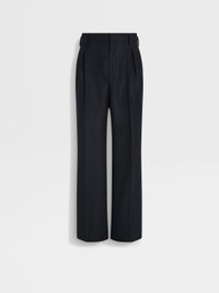 Showcased in the ZEGNA Fashion Show, these multi-pleat black melange wool pants are the epitome of quiet luxury. INFO A refined base for impeccable formal ensembles, these black melange pants are crafted from pure wool. Multiple pleats bring depth and movement to their sartorial silhouette, while in-seam pockets create a streamlined finish. PRODUCT CODE 2A7010A2-7621H2 MATERIALS AND CARE 100% Wool Do not wash. Do not bleach. Do not tumble dry. Iron at 110°C. Professional dry cleaning in tetrachloroethene and hydrocarbons, mild process. FIT AND PRODUCT DETAILS • Regular fit • Tailoring pants • 26 cm regular hem • Zip, hook and button closure • Seamed pockets and back welt pockets • Lined • Multi-pleat style