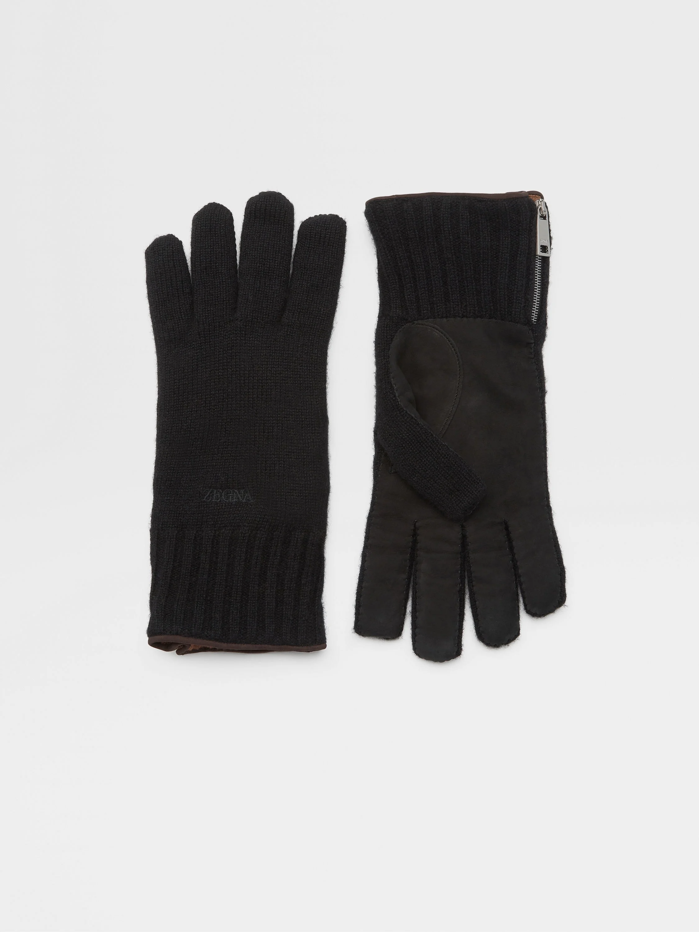 Feel the difference that luxury materials make with the black Oasi Cashmere gloves. INFO The black Oasi Cashmere gloves are crafted from Zegna's ultra-fine cashmere yarn, which is soft to the touch and blocks out the cold without feeling bulky. The black gloves are accentuated with leather details and the embroidered Zegna Logo on the front. The simple design coordinates easily with formal and casual looks alike. PRODUCT CODE Z6G02GA6-G62-BK1 MATERIALS AND CARE Main body: 100% Cashmere Details: Calfskin Lining: 100% Cashmere This Oasi Cashmere Collection garment was Born in Oasi Zegna, our 100km² natural territory and the home of our values. Crafted from cashmere of uncompromising quality and softness, the Oasi Cashmere Collection follows in the footsteps of our founder, who envisioned a vertically integrated system of producing textiles. Do not wash. Do not bleach. Do not tumble dry. Do not iron. Do not dry clean. FIT AND PRODUCT DETAILS • Leather details • Metal zip closure on side • Cashmere lining • Embroidered Zegna Logo on the front • Zegna 232 Road Brand Mark inside on the left • Made in Italy