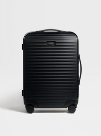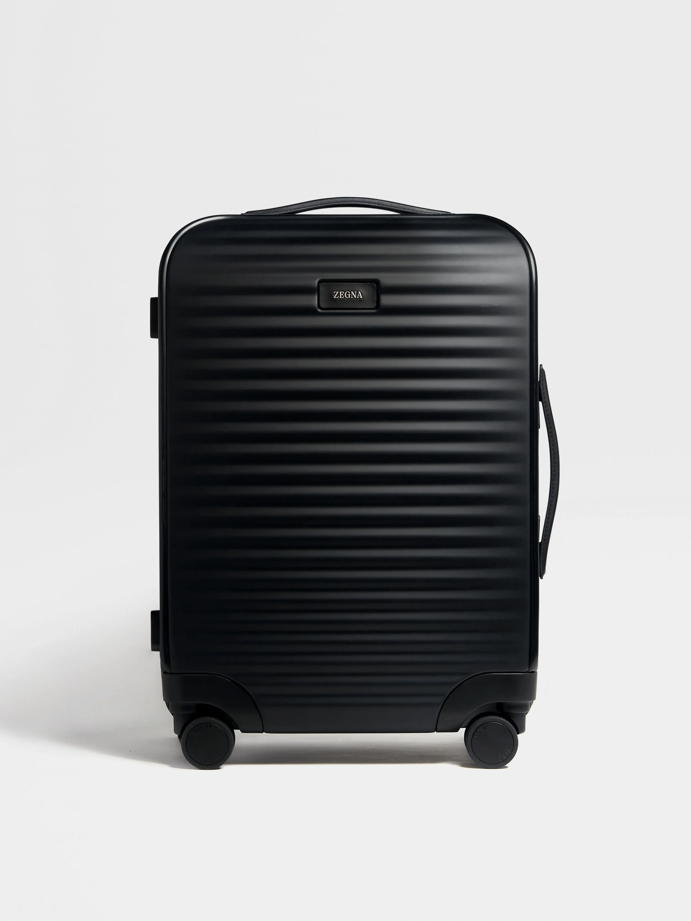 The black polycarbonate trolley accompanies you on all your travels. INFO Mounted on sturdy wheels, the black polycarbonate trolley is the latest addition to Zegna's elegant luggage collection. The wheeled suitcase offers plenty of storage space and zips securely shut. Leather handles and silver metal finishes add unmistakable flair. PRODUCT CODE LHPUL-C1935Z-NER MATERIALS AND CARE Main body: Polyurethane; Calfskin Lining: 100% Polyester Protect from moisture and do not place near direct sources of heat. Clean with a soft cloth. Do not use solvents or polishes. Avoid contact with cosmetics, perfumes and hand lotions and sanitizers. Store in a cool, dry, well-ventilated place. Stow in the included dust bag when not in use. FIT AND PRODUCT DETAILS • Glazed silver metal finish • Leather handles and name tag • Zip closure • Zegna Logo • Capacity: 45 L • 36 x 55 x 24 cm / 14.1 x 21.6 x 9.4 in • Made in Italy