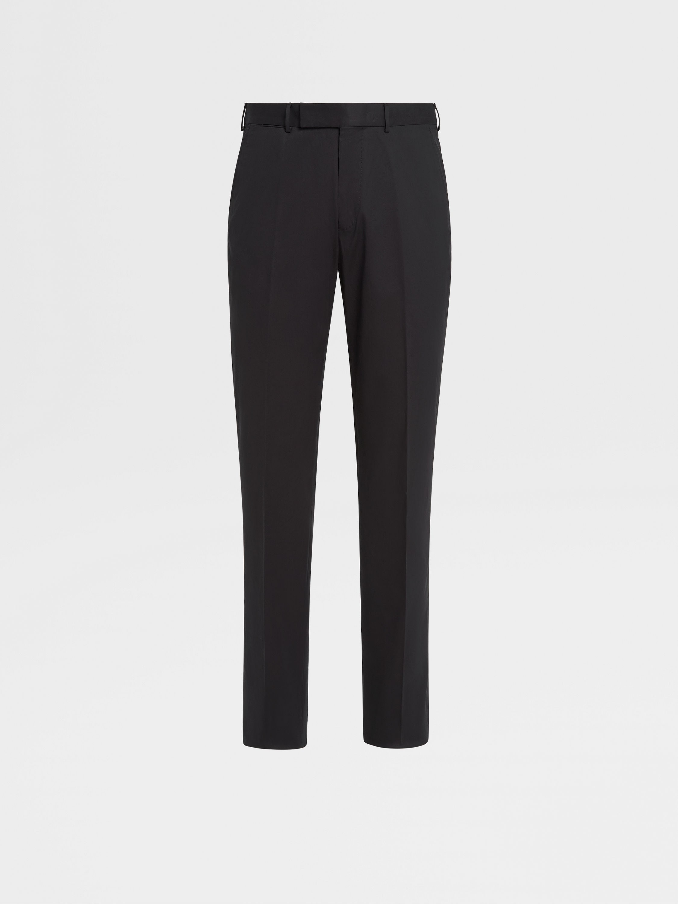 The black Premium Cotton pants are a sleek and effortless staple. INFO Lightweight and breathable, the black Premium Cotton pants are a versatile addition to elegant wardrobes. The classic colorway and sleek, flat front create a streamlined silhouette that's perfect for any everyday business wear. PRODUCT CODE 415F07-77TB12 MATERIALS AND CARE 96% Cotton; 4% Elastane Machine wash, cold (30°C / 85°F), gentle or delicate. Do not bleach. Do not dry clean. Do not tumble dry. Dry in shade. Regular ironing, steam or dry, may be performed at low setting (110°C / 230°F). FIT AND PRODUCT DETAILS • Slim fit • 18.5 cm bottom • Button and zip closure • American pockets • Flat front style • Unlined, semi-canvas construction Pants hems are unfinished. You can bring your pants to our boutiques for alterations.