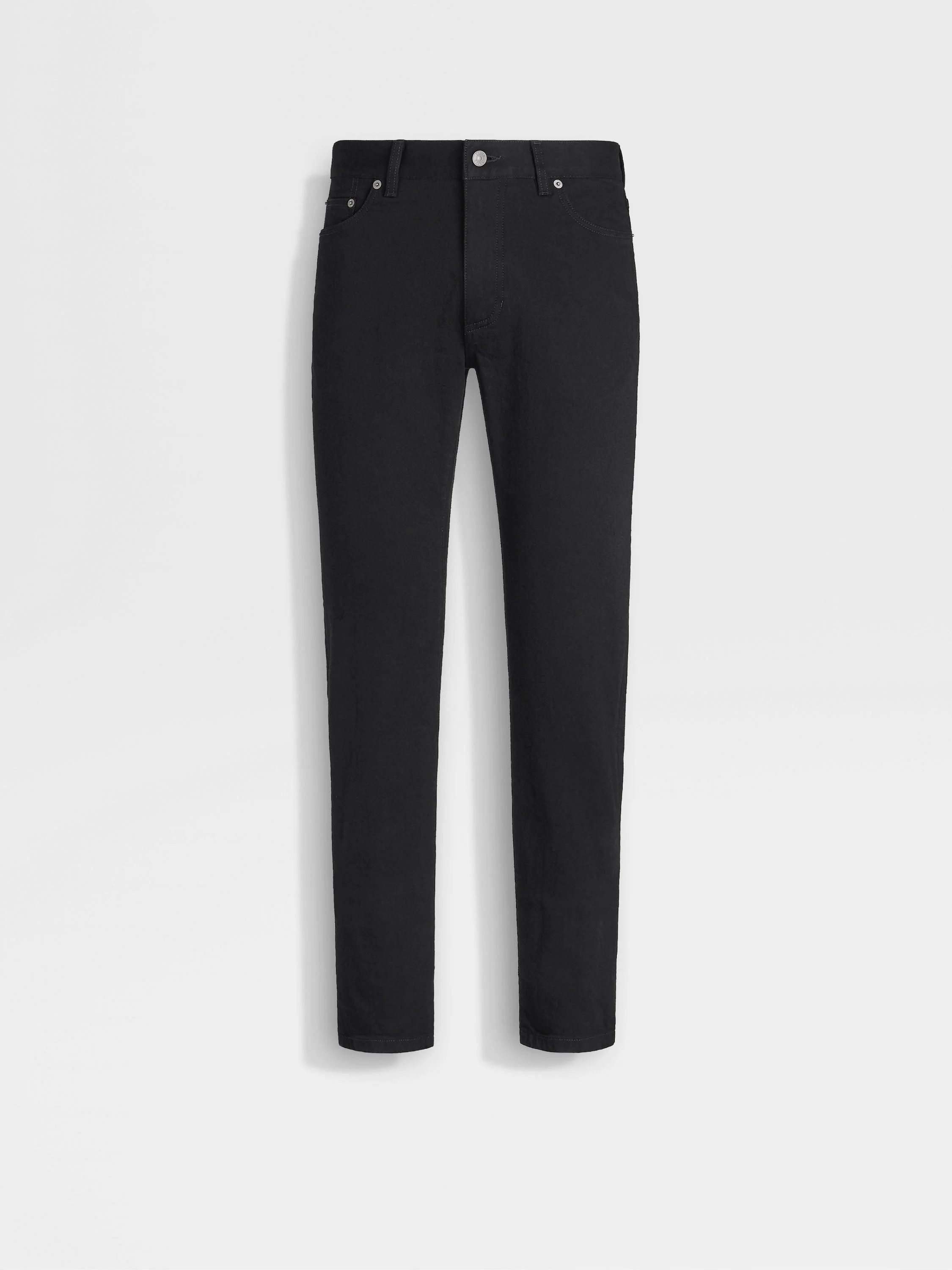 The black rinse-washed stretch cotton Roccia jeans are styled with a contemporary, slim fit. INFO Enhanced with a touch of stretch for added comfort, the black rinse-washed stretch cotton Roccia jeans move with you throughout the day. The deep colorway keeps casual looks sophisticated, while the slim fit creates a long, lean silhouette. The inspiration for the Roccia Jeans, Roccia the Italian word for 'Rock', was Born in Oasi Zegna — the home of our values in the Italian Alps. Inspired by classic workwear, they're both hardwearing and elegant, making them a reliable foundation to any look. PRODUCT CODE E8I79-CITY-001 MATERIALS AND CARE Main body: 98% Cotton; 2% Elastane Lining: 65% Polyester; 35% Cotton Max washing temp 30°C, mild process. Do not bleach. Do not tumble dry. Line drying in the shade. Iron at max 110°C. Do not dry clean. Wash separately. Wash inside out. FIT AND PRODUCT DETAILS • Slim fit • 17.5 cm narrow hem • Zip and button closure • 5-pocket style • Rinse wash • Denim weight: 9.5 ounces • Model is 185 cm tall (6.0 feet) and wears a UK size 32.
