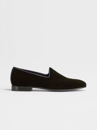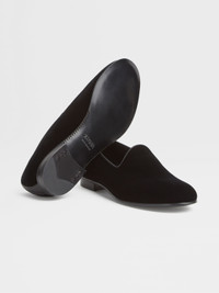 Complete refined evening wear with the Palermo slip-on loafers in black velvet. INFO The soft, black velvet Palermo slip-on loafers deliver a final touch of sophistication. Completed with a black leather outsole, this sleek velvet loafer makes a statement at galas or formal events. PRODUCT CODE LHVEL-A5089Z-NER MATERIALS AND CARE Rayon Viscose; Cotton; Velvet Clean with a soft cloth. Maintain the leather's glossy appearance by applying a small dab of polish and distributing it uniformly over the surface with a soft cloth. Let dry for a few minutes, then vigorously shine with clean, soft cloth. Avoid contact with abrasives, including hard-bristled brushes, and substances containing alcohol, such as perfumes, solvents, etc. In case of contact with water, it is important to let the footwear dry completely before cleaning. Store in the included dust bag in a cool, dry place. FIT AND PRODUCT DETAILS • Rayon Viscose, Cotton, Velvet • Leather lining • Black leather outsole • Made in Italy • Fits true to size • Comes with a shoe bag