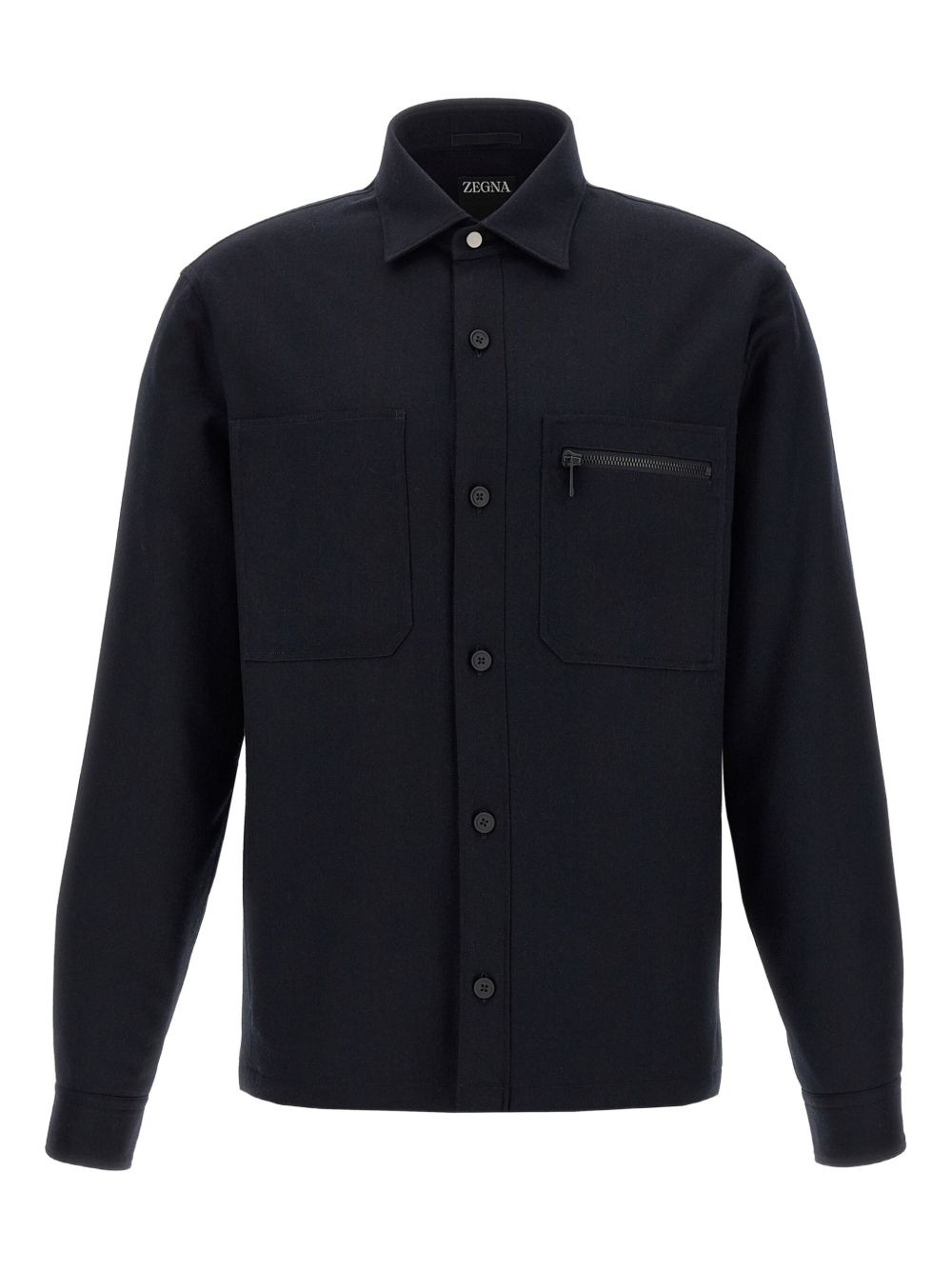 zip-pocket wool shirt Highlights - Dark blue - Wool - Front button-closure - Long cuffed-sleeves - Patch pockets - Zip-pocket detail Imported Composition Wool 100%