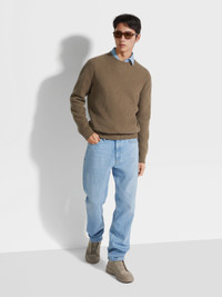 Zegna presents a sophisticated take on an enduring favorite with the light blue Cashco shirt. INFO The light blue Cashco shirt is made from a luxuriously soft and breathable cotton and cashmere denim. The elevated, long-sleeve denim shirt is finished with a bleach wash for an intentionally faded look. It is topped off with a one-piece collar. PRODUCT CODE UEX23A8-SRO1-004 MATERIALS AND CARE 95% Cotton; 5% Cashmere This garment is crafted from a luxurious blend of cashmere and cotton for exceptional softness and breathability. Max washing temp 30°C. Do not bleach. Do not tumble dry. Line drying in the shade. Iron at max 110°C. Professional dry cleaning in tetrachloroethene and hydrocarbons. FIT AND PRODUCT DETAILS • Regular fit • One-piece collar • Standard cuffs • Button closure • Rounded hem • Bleached • 79 cm length on size 39