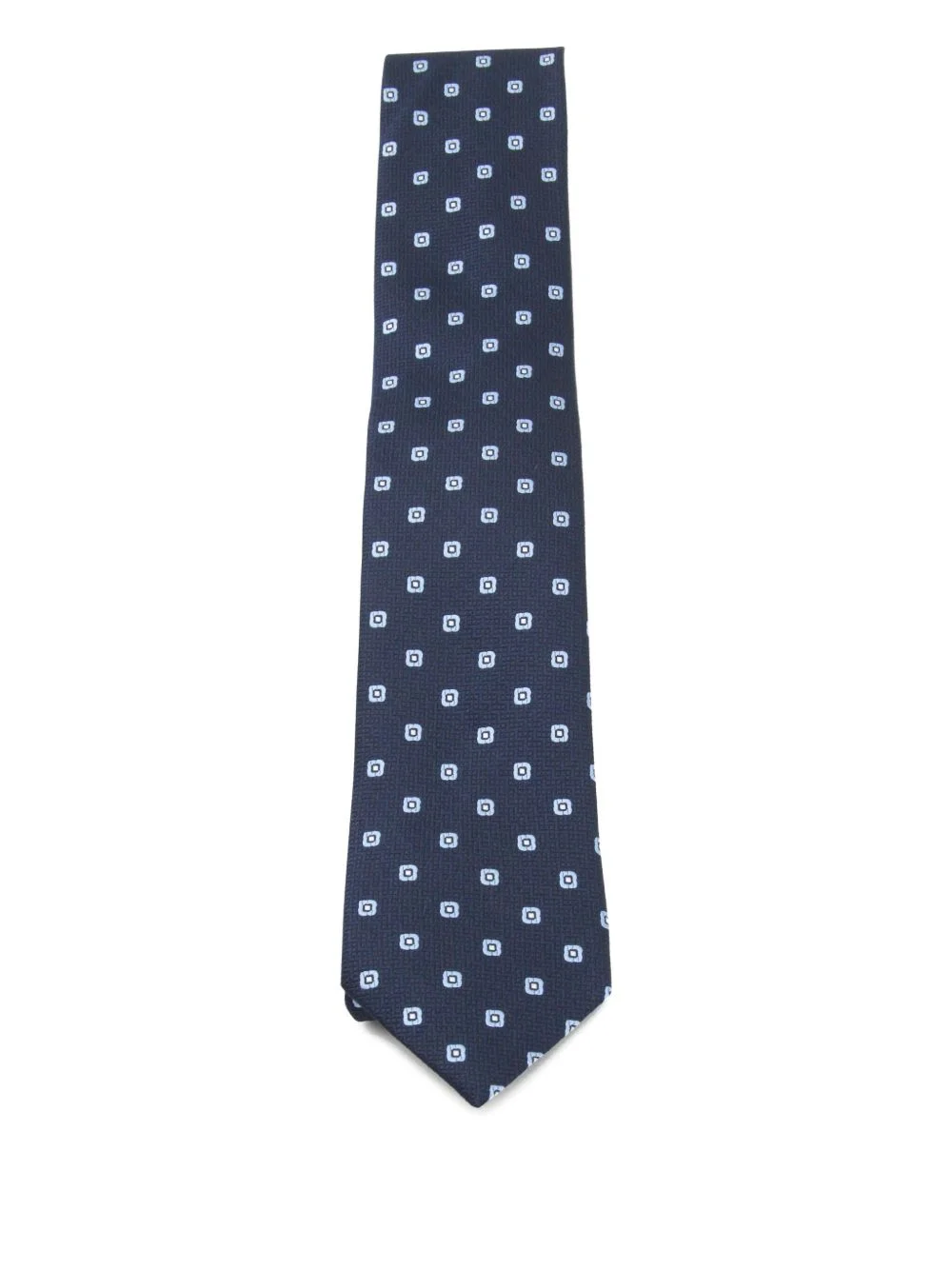 square-pattern tie Highlights - Navy blue - Square pattern - Woven texture - Pointed tip Made in Italy Composition Silk 100% Washing instructions Read Manufacturer Guidelines