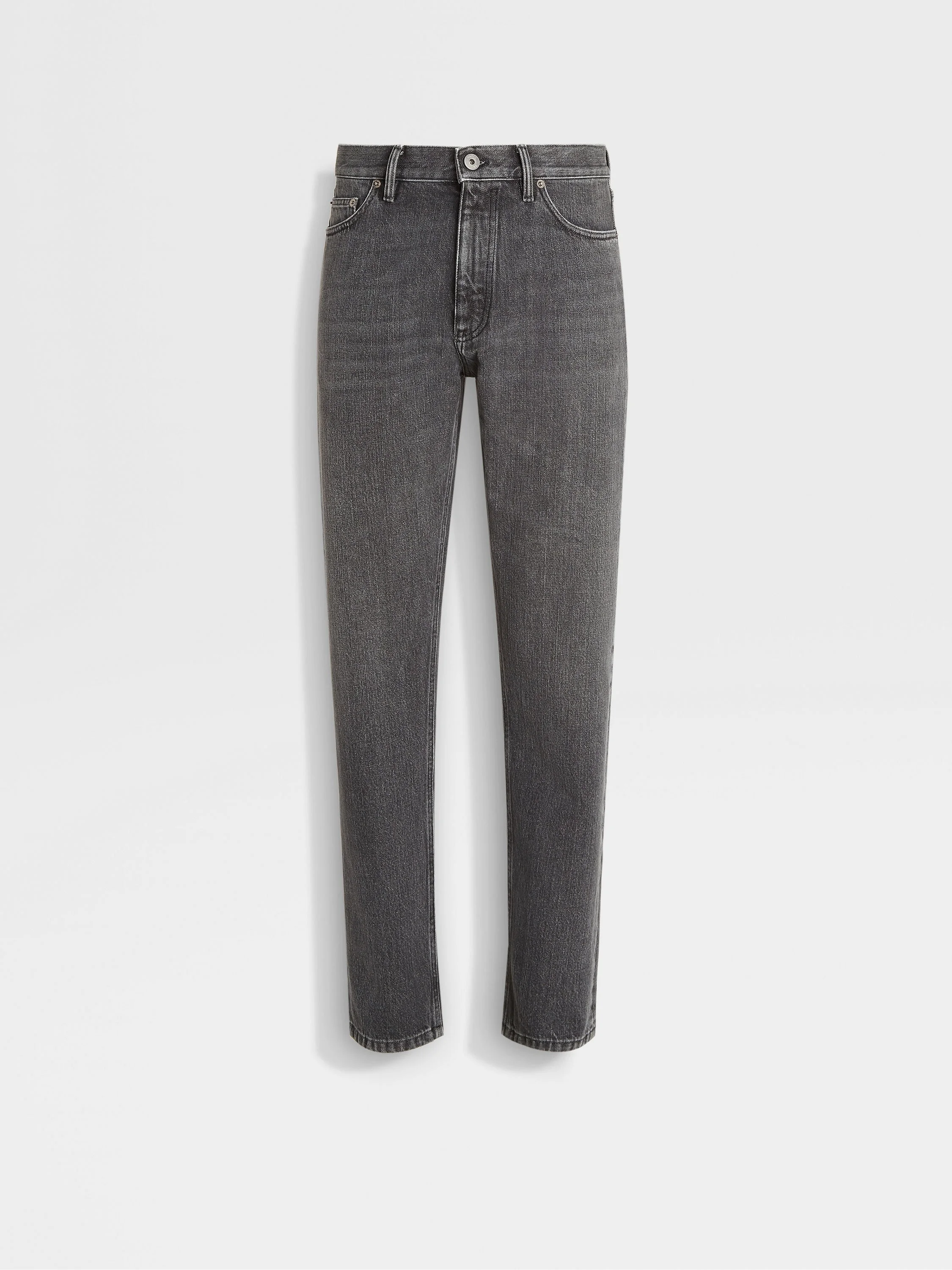 The blue stone-washed cotton Roccia jeans are an elegant contemporary essential. INFO An elevated take on classic denim jeans, the blue stone-washed Roccia jeans are crafted from pure cotton for optimal comfort. The rugged rinse coordinates easily with casual looks. The jeans are styled with the brand's signature, slim fit. ROCCIA ('rɔt:ʃa) — ITALIAN FOR 'ROCK' The inspiration for the Roccia Trousers was Born in Oasi Zegna — the home of our values in the Italian Alps. Inspired by classic workwear, they're both hardwearing and elegant, making them a reliable foundation to any look. PRODUCT CODE UEL48A8-CITYE-005 MATERIALS AND CARE Main body: 100% Cotton Lining: 65% Polyester; 35% Cotton Max washing temp 30°C, mild process. Do not bleach. Do not tumble dry. Line drying in the shade. Iron at max 110°C. Do not dry clean. Wash separately. Wash inside out. FIT AND PRODUCT DETAILS • Slim fit • 17.5 cm narrow hem • Zip and button closure • 5-pocket style • Stone wash • Denim weight: 12 ounces