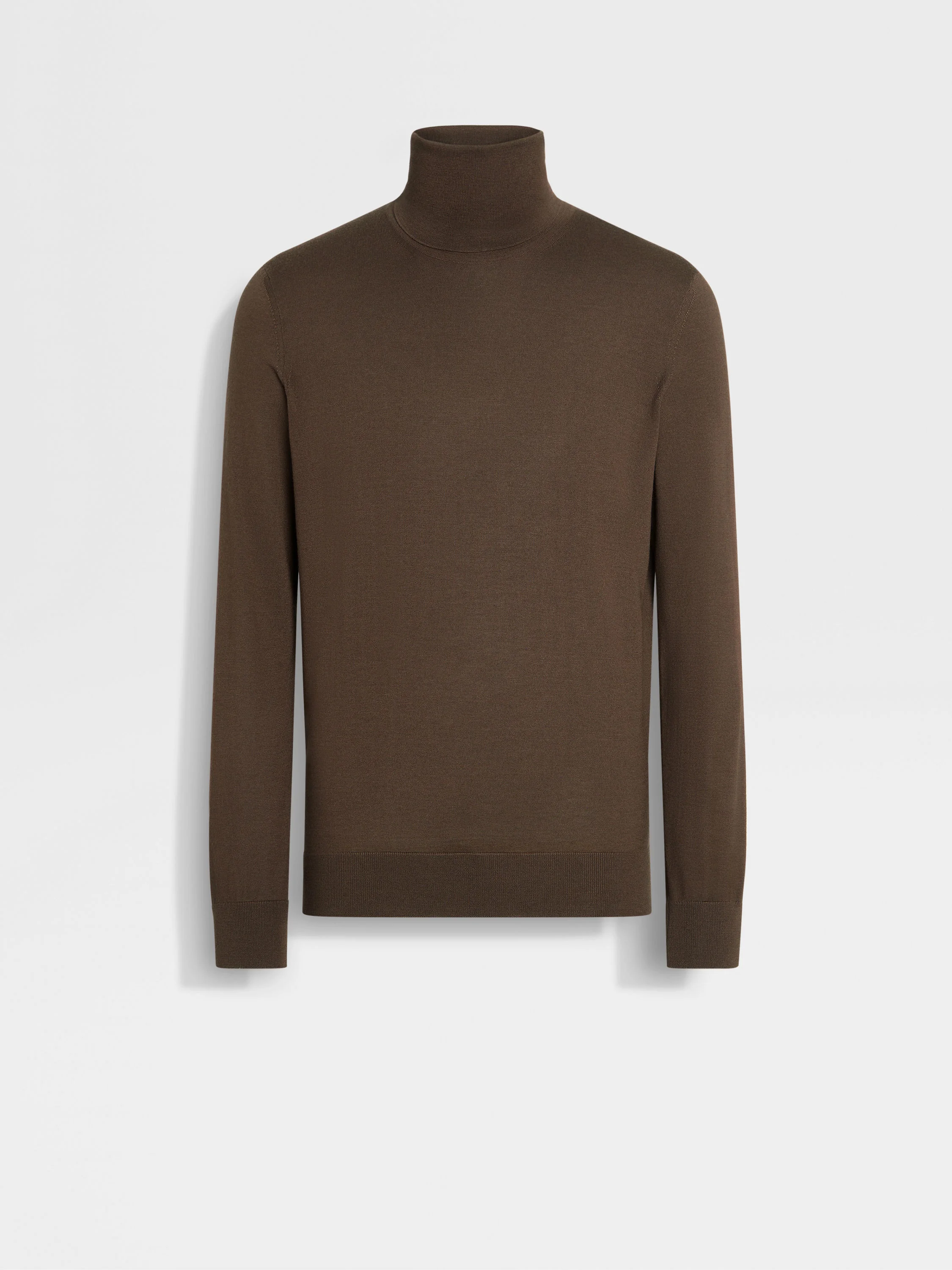 The brown melange Cashseta turtleneck brings together the best of cashmere and silk. INFO ZEGNA's refined blend of luxury fibers lends the brown melange Cashseta turtleneck its distinctive finish. This special material is yarn-dyed, creating subtle variations in each garment. A staple of sophisticated wardrobes, the turtleneck creates a sleek silhouette. PRODUCT CODE UGJ00A2-120-M96 MATERIALS AND CARE 70% Cashmere; 30% Mulberry Silk This sophisticated fabric combines the softness of cashmere with the smooth finish of fine silk. The yarns of Cashseta are dyed before the fabric is created, resulting in a melange that is unique to each garment. Wash by hand. Do not bleach. Do not tumble dry. Flat drying. Iron at max 110° C. Professional dry cleaning in hydrocarbons, mild process. Wash and iron inside out. FIT AND PRODUCT DETAILS • 18 gauge • Ribbed turtleneck collar • Long sleeves • Ribbed hem and cuffs