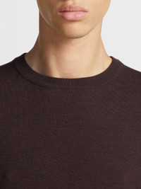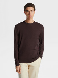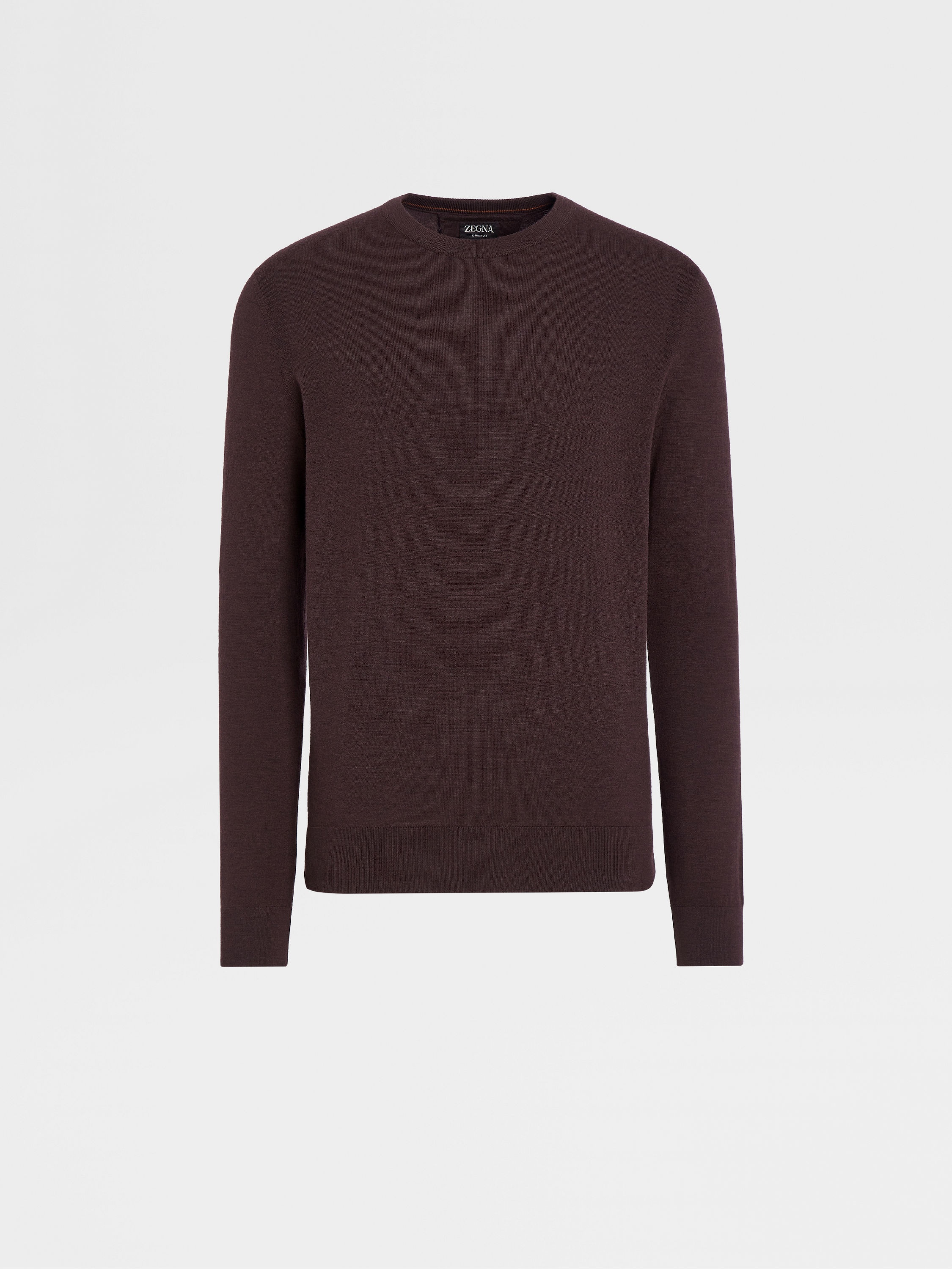 The burgundy 12milmil12 wool knit crewneck showcases one of Zegna's finest yarns. INFO Combining a classic, simple silhouette with superfine, 12milmil12 wool, the burgundy crewneck is effortlessly sophisticated. Ribbed trim frames the luxuriously soft construction, while a slim fit keeps it structured and dynamic. PRODUCT CODE E7M01-110-L98 MATERIALS AND CARE 100% Wool The wool of this 12milmil12 garment is obtained from Australian flocks that are specially bred for their superfine fleeces. Measuring just 12 microns in diameter, the exceptionally rare fibres are finer than both vicuña and cashmere. Hand wash (30°C / 85°F). Do not bleach. Do not dry clean. Do not tumble dry. Dry flat. Regular ironing, steam or dry, may be performed at low setting (110°C / 230°F). FIT AND PRODUCT DETAILS • Ribbed round collar • Long sleeves • Ribbed cuffs • Tubular bottom • Slim fit