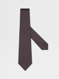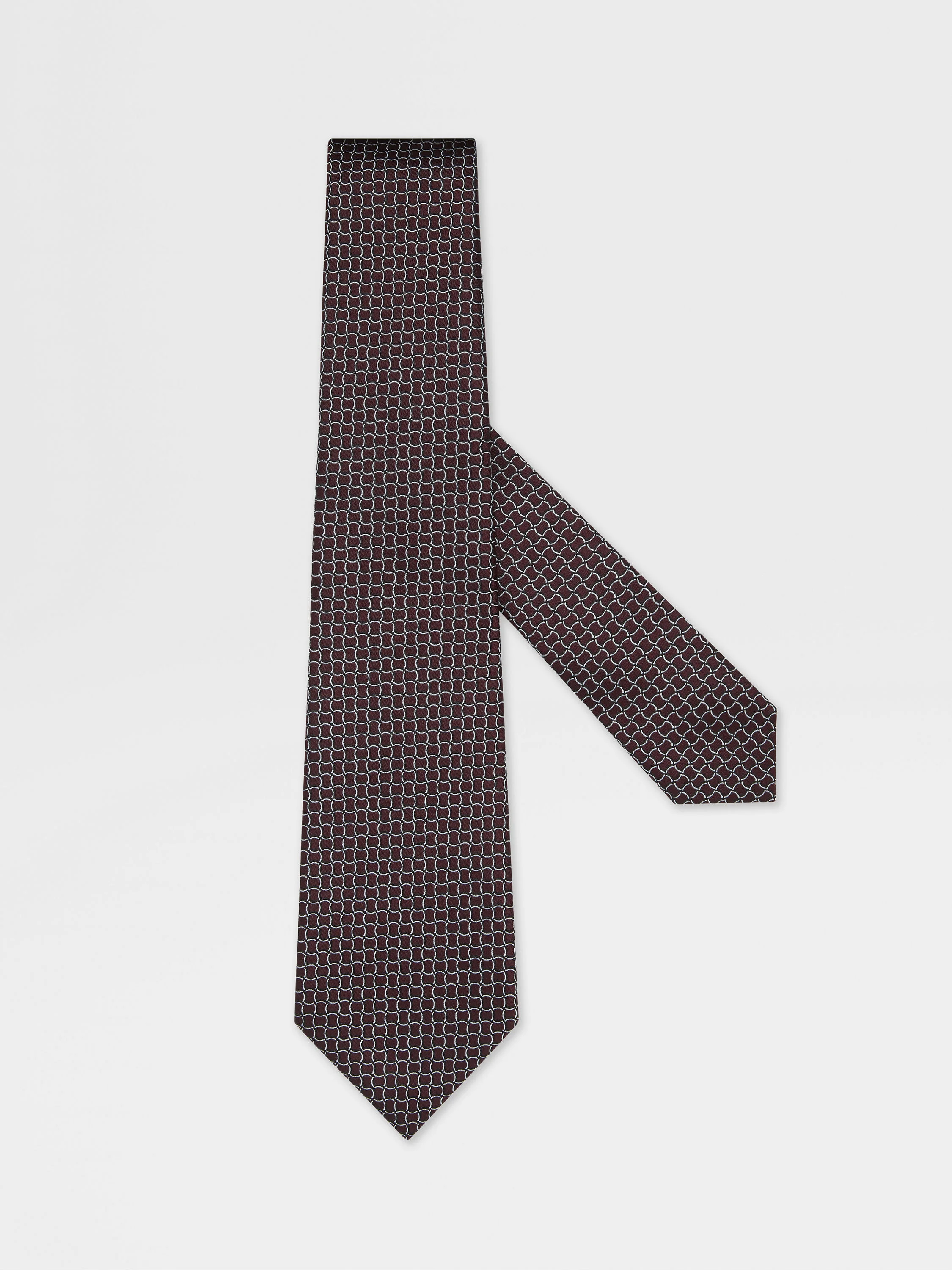 This jacquard tie brings modern charm to formal looks with its burgundy netting pattern. INFO Elevate office-to-evening ensembles in this luxuriously soft pure Mulberry silk tie. An elegant burgundy colorway provides the perfect backdrop for a distinctive netting pattern. PRODUCT CODE Z2C42TA2-1PC-BU1 MATERIALS AND CARE Main body: 100% Mulberry Silk Lining: 100% Mulberry Silk Do not wash. Do not bleach. Do not tumble dry. Do not iron. Professional dry cleaning in tetrachloroethene and hydrocarbons, mild process. FIT AND PRODUCT DETAILS • Blade width: 8 cm / 3.1 in • Netting pattern