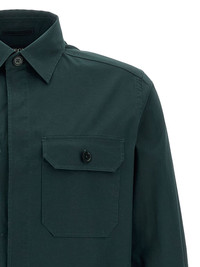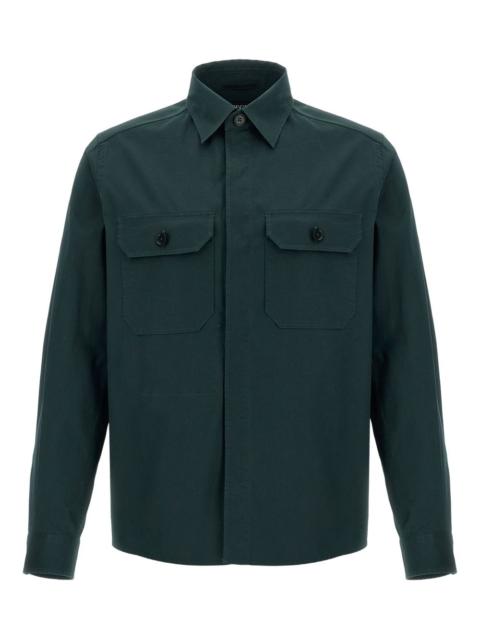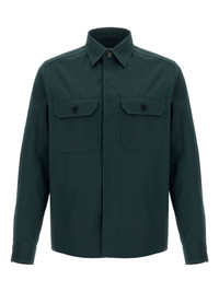 button-down overshirt Highlights - Dark green - Front button fastening - Two chest flap pockets - Classic collar - Buttoned cuffs Made in Italy Composition Cotton 96%, Elastane 4%