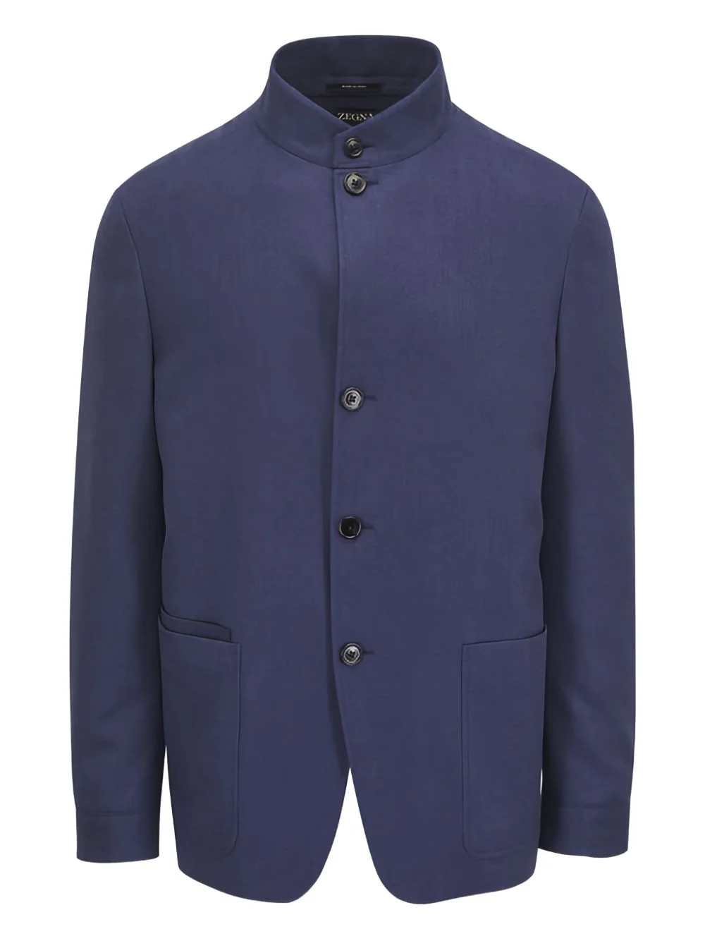buttoned collarless jacket Highlights - Blue - Collarless - Button fastening - Long sleeves - Front patch pockets Made in Italy Composition Cashmere 100% Washing instructions Dry Clean Only