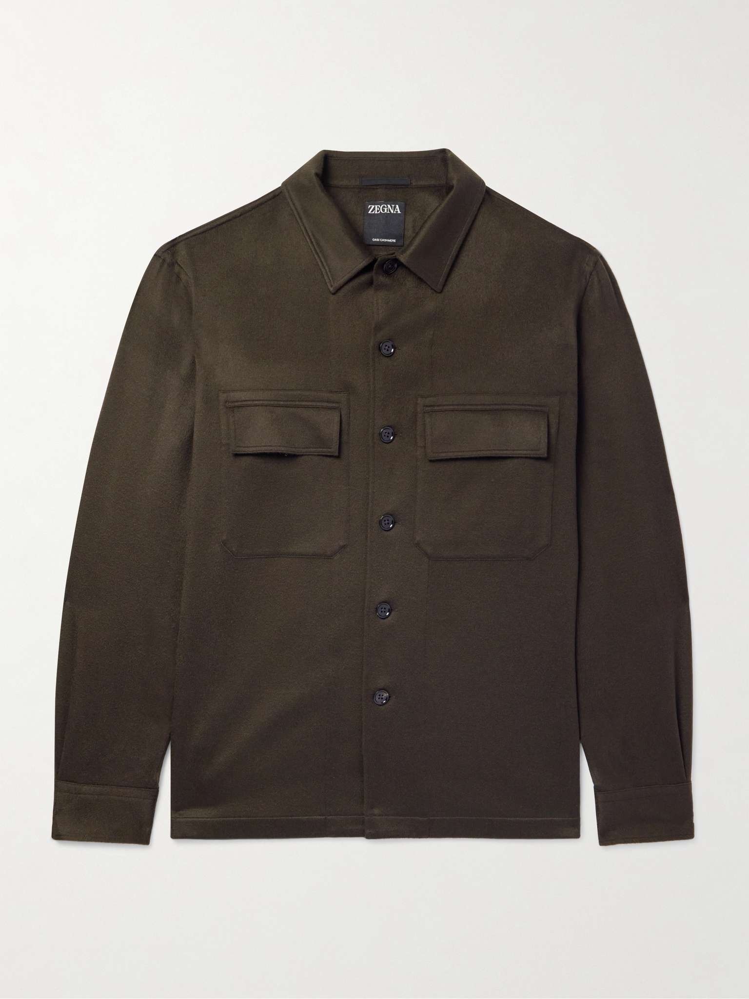 ZEGNA sources raw natural fibres from Mongolia to create the brand's ultra-luxurious Oasi cashmere, which was used to make this overshirt. Modelled after chore styles, it's tailored with a classic collar and a pair of flap pockets, while the back is stitched with the label's leather logo. The placket is finished with polished horn buttons. Size & Fit - Fits true to size. Take your normal size - Designed for a slightly loose fit - Mid-weight, non-stretchy fabric - Model is shown wearing a size Small - Model measures: chest 38"/ 96cm, height 6'1"/ 185cm Details & Care - Brown Oasi cashmere and leather - Button fastenings - 100% Oasi cashmere; trim: 100% leather (Calf); buttons: 100% horn (Buffalo) - Dry clean
