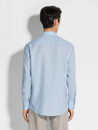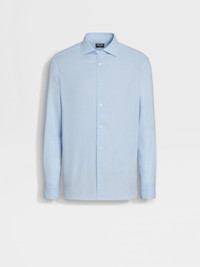 A refined blend of cotton and cashmere gives the light blue Cashco shirt its distinctive texture. INFO The light blue Cashco shirt is made from one of Zegna's lightest yarns. Perfect for everyday wear, this elegant, long-sleeve shirt is styled with a semi-spread collar and standard cuffs. PRODUCT CODE UEX44A8-SRF5-613 MATERIALS AND CARE 85% Cotton; 15% Cashmere This garment is crafted from a luxurious blend of cashmere and cotton for exceptional softness and breathability. Wash by hand. Do not bleach. Do not tumble dry. Iron at max 110°C. Professional dry cleaning in tetrachloroethene and hydrocarbons. FIT AND PRODUCT DETAILS • Regular fit • Semi-spread collar • Standard cuffs • Button closure • Rounded hem • 79 cm length on size 39