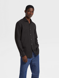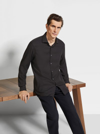 A refined blend of cotton and cashmere makes the black Cashco long-sleeve shirt soft and smooth to the touch. INFO The black Cashco shirt is made from one of Zegna's lightest yarns. Perfect for everyday wear, this elegant, long-sleeve shirt is styled with a semi-spread collar and detachable stays. PRODUCT CODE E8X44A6-SRF5-490 MATERIALS AND CARE 85% Cotton; 15% Cashmere This garment is crafted from a luxurious blend of cashmere and cotton for exceptional softness and breathability. Wash by hand. Do not bleach. Do not tumble dry. Iron at max 110°C. Professional dry cleaning in tetrachloroethene and hydrocarbons. FIT AND PRODUCT DETAILS • Regular fit • Semi-spread collar • Standard cuffs • Button closure • Rounded hem • Detachable stays • 79 cm length on size 48