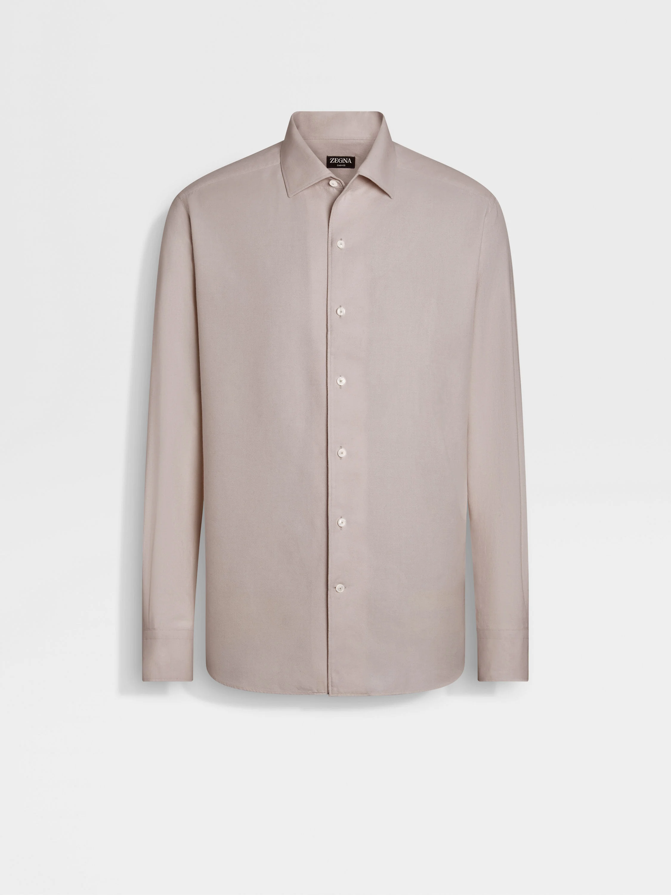 Cotton is blended with cashmere to give this light taupe Cashco long-sleeve shirt its impeccable texture. INFO This light taupe Cashco shirt elevates the everyday with one of ZEGNA's lightest, most luxurious blends. Its elegant silhouette features classic cuffs, a button closure and gussets on the sides for a flawless fit. PRODUCT CODE UGX26A2-SRO1-007 MATERIALS AND CARE 85% Cotton; 15% Cashmere This garment is crafted from a luxurious blend of cashmere and cotton for exceptional softness and breathability. Max washing temp 30°C, mild process. Do not bleach. Do not tumble dry. Iron at max 110°C. Professional dry cleaning in tetrachloroethene and hydrocarbons. FIT AND PRODUCT DETAILS • Regular fit • One-piece collar • Shirt cuffs • Button closure • Side gussets • 79 cm length on size 39