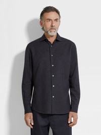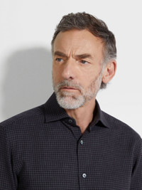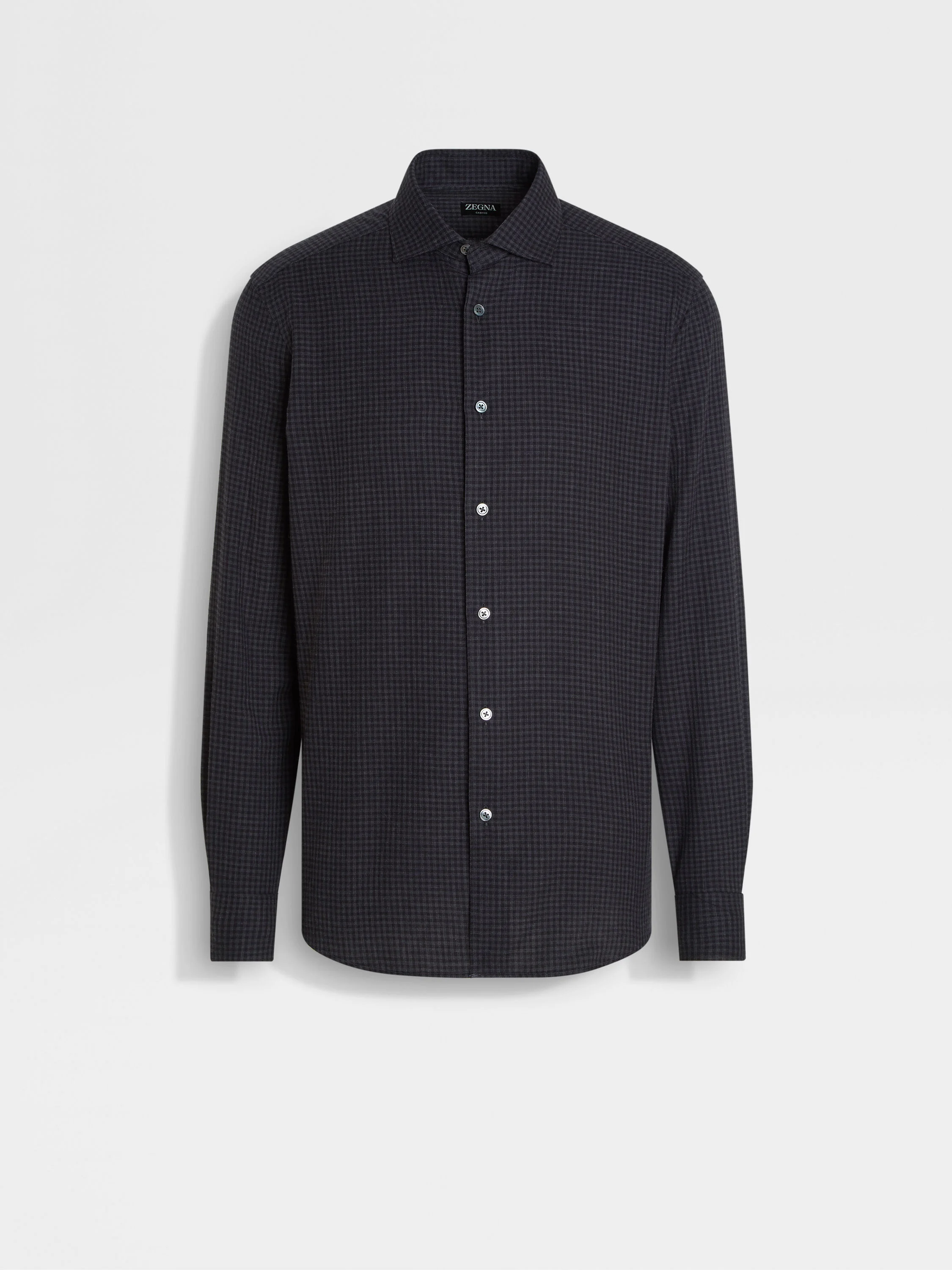This Cashco long-sleeve shirt exudes dynamic elegance with its dark grey and black checked pattern. INFO ZEGNA's signature blend of cotton and cashmere breathes new life into a familiar long-sleeve silhouette, imbuing this dark grey and black checked shirt with elevated levels of comfort and style. Designed with a versatile semi-spread collar and rounded hem. PRODUCT CODE UGX45A2-SRF5-748 MATERIALS AND CARE 85% Cotton; 15% Cashmere This garment is crafted from a luxurious blend of cashmere and cotton for exceptional softness and breathability. Wash by hand. Do not bleach. Do not tumble dry. Iron at max 110°C. Professional dry cleaning in tetrachloroethene and hydrocarbons. FIT AND PRODUCT DETAILS • Regular fit • Semi-spread collar • Standard cuffs • Button closure • Rounded hem • Checked pattern • 79 cm length on size 39