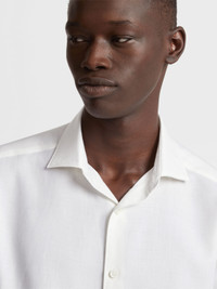 A refined blend of cotton and cashmere makes the white Cashco long-sleeve shirt soft and smooth to the touch. INFO The white Cashco shirt is made from one of Zegna's lightest yarns. Perfect for everyday wear, this elegant, long-sleeve shirt is styled with a semi-spread collar and detachable stays. PRODUCT CODE E8X44A6-SRF5-210 MATERIALS AND CARE 85% Cotton; 15% Cashmere This garment is crafted from a luxurious blend of cashmere and cotton for exceptional softness and breathability. Wash by hand. Do not bleach. Do not tumble dry. Iron at max 110°C. Professional dry cleaning in tetrachloroethene and hydrocarbons. FIT AND PRODUCT DETAILS • Regular fit • Semi-spread collar • Standard cuffs • Button closure • Rounded hem • Detachable stays • 79 cm length on size 48