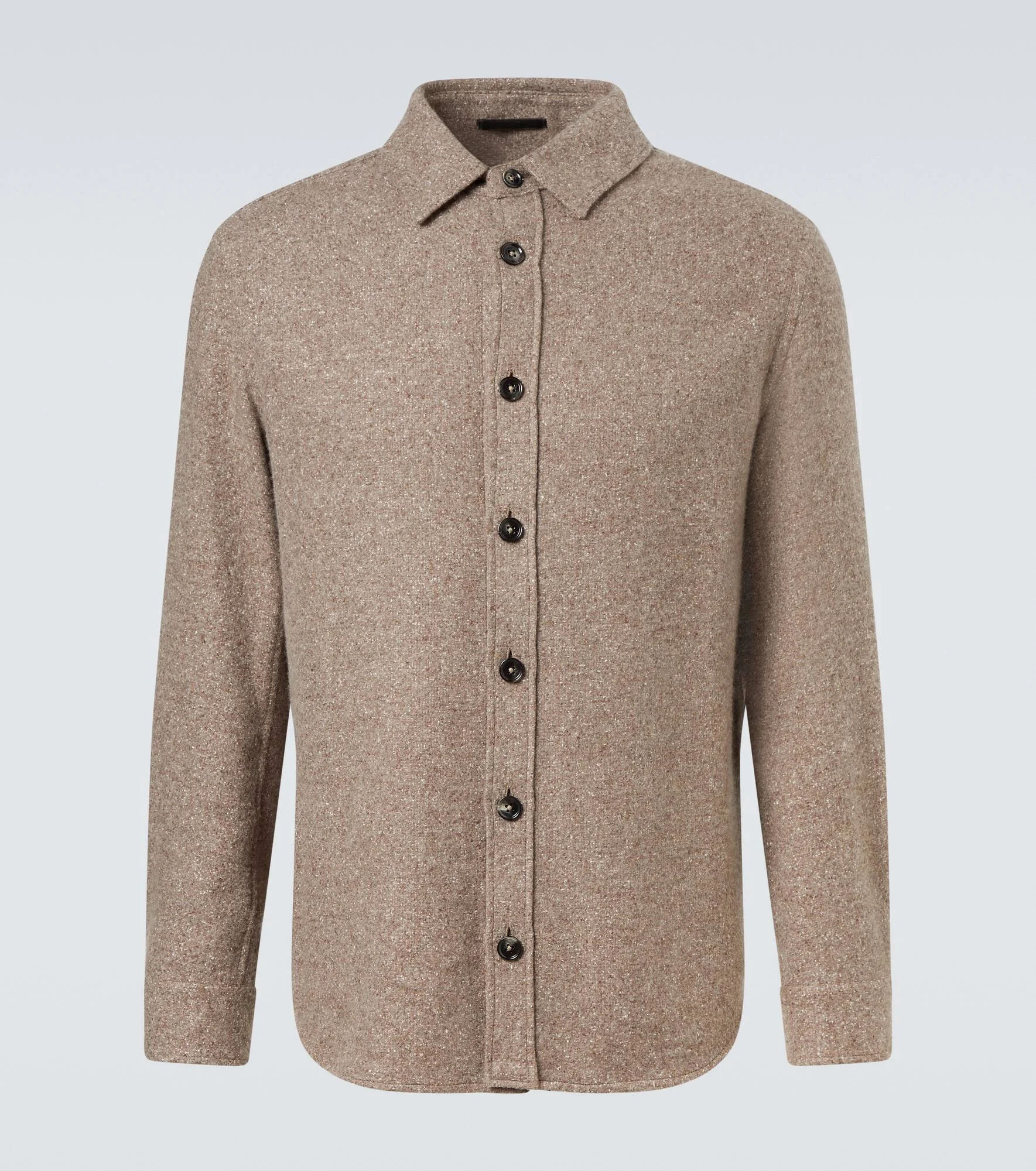Crafted in Italy from cashmere and silk, this overshirt from Zegna features slightly dropped shoulders. The design is finished with a classic collar and is cut to straight silhouette. Product Details - Material: 59% cashmere, 41% silk - Care instructions: dry clean - Made in Italy - Designer color name: Brown - Item color: brown - Details: 100% calf leather - Contains non-textile parts of animal origin - Closure: buttoned front - Collar: classic (Straight point) - Item number: P01057451 Size & Fit - True to size - Without pleats in the back - Straight fit - Non-stretchy fabric - Falls below the hip - The model in the picture is 185cm-6'1" and wearing a size L