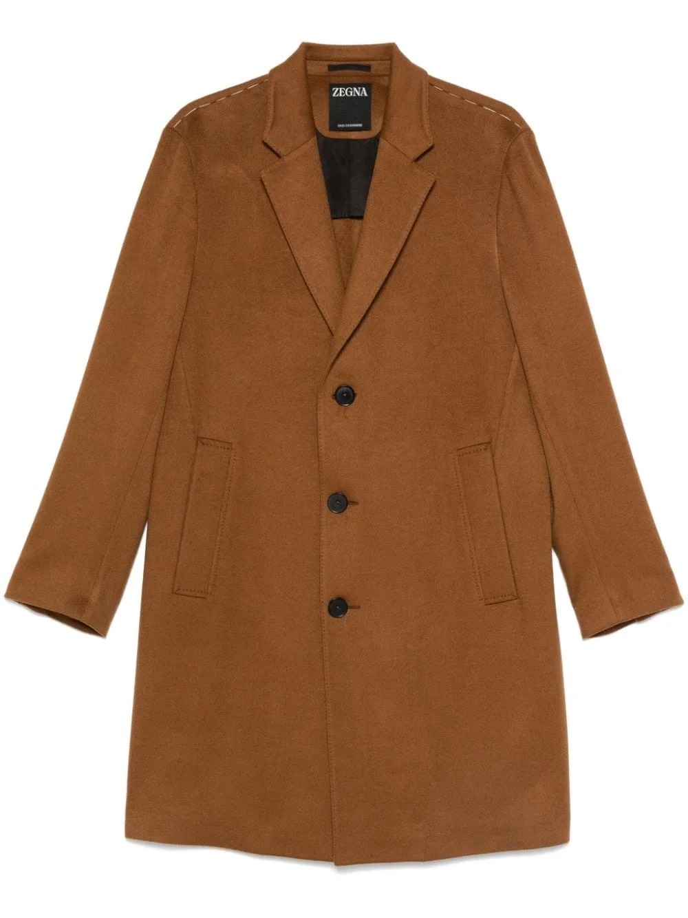 cashmere coat Highlights - Cognac brown - Cashmere - Front button fastening - Notched lapels - Long sleeves - Buttoned cuffs - Two side welt pockets - American rear vent - Partial lining - Straight hem Imported Composition Lining: Cupro 50%, Cotton 50% Outer: Cashmere 100%