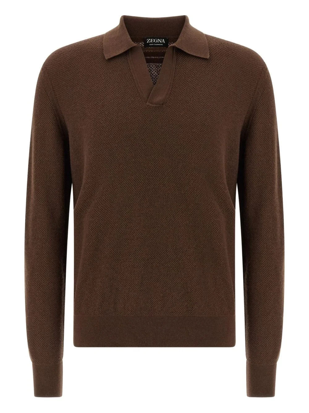 Oasi jacquard V-neck polo shirt Highlights - Brown - Jacquard - V-neck - Polo collar - Long sleeves - Cuffs Made in Italy Composition Cashmere 100% Washing instructions Read Manufacturer Guidelines