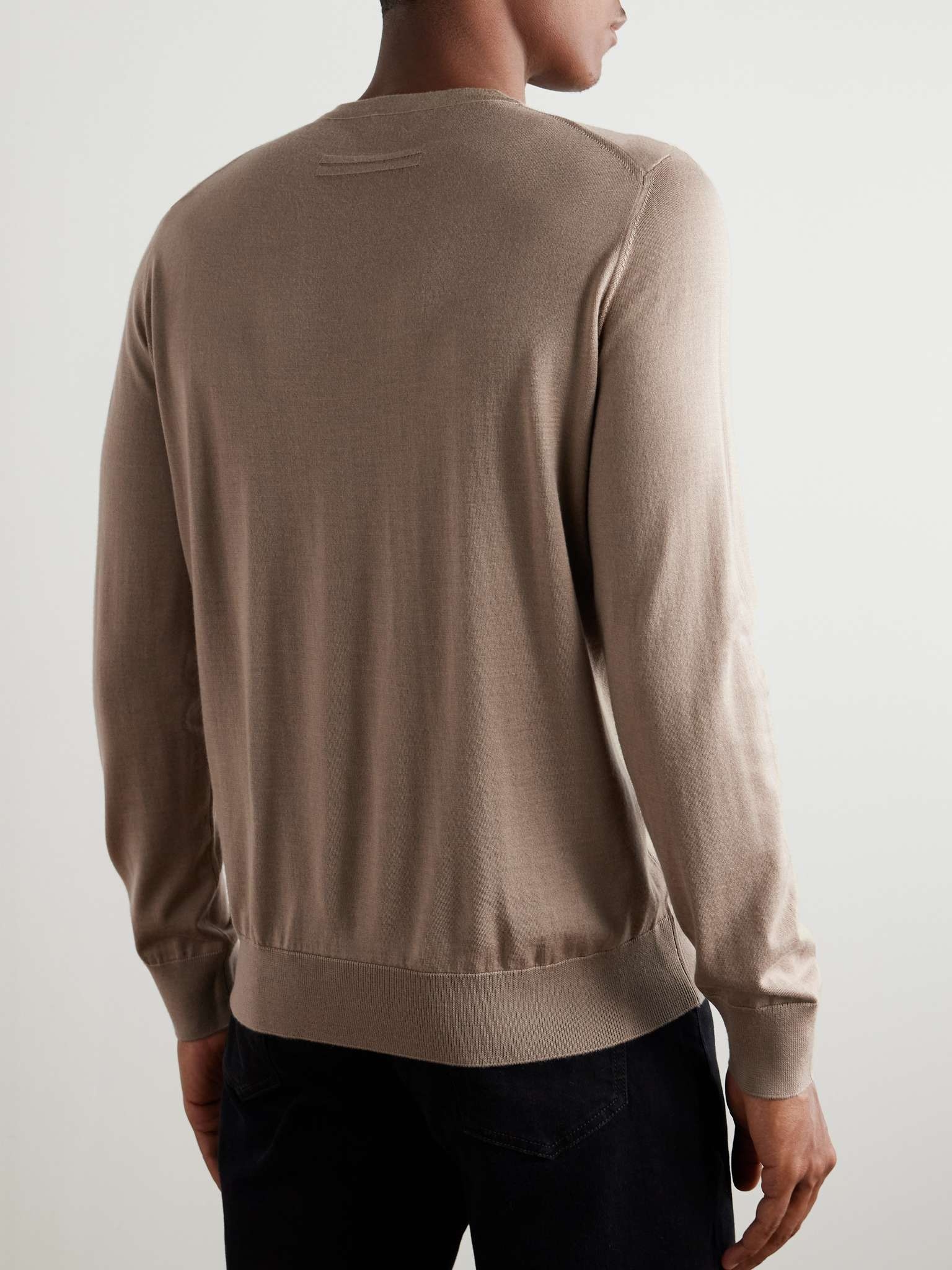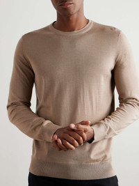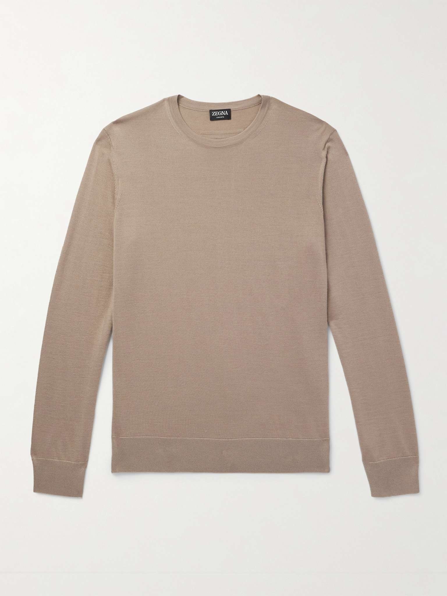 ZEGNA's Filiera, or supply chain, is one of the most impressive in the world, consisting of nine Italian-owned fabric mills that specialise in natural fibres. This sweater is knitted from the label's 'Cashseta' - a cashmere and silk-blend - and detailed with a signature '232 Road Brand Mark' at the back. Size & Fit - Fits true to size. Take your normal size - Take the next size up if you wish to achieve a looser fit - Designed for a regular fit - Fine knit - Model is shown wearing an IT 48 - Model measures: chest 38"/ 96cm, height 6'1"/ 185cm Details & Care - Beige Cashseta - 70% cashmere, 30% silk - Dry clean