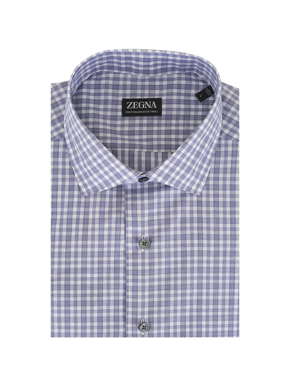 check-pattern shirt Highlights - Blue and white - Check pattern - Button fastening - Point collar Made in United States Composition Cotton 100% Washing instructions Machine Wash