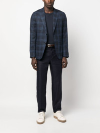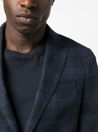 check single-breasted blazer Highlights - Navy blue - Wool blend - Tailored cut - Check pattern - Notched lapels - Front button fastening - Chest welt pocket - Two side patch pockets Imported Composition Outer: Wool 53%, Viscose 46%, Elastane 1% Lining: Viscose 100% SIZE & FIT Model measurements Height 6 ft 0 in(1.84 m) Bust/Chest 35.82 in(91 cm) Hips 37 in(94 cm) Waist 28.34 in(72 cm) FittingInformation Designed for a slim fit, offering a comfortable fit that sits just away from the body The vented hem offers movement at the rear Made from a midweight stretch fabric, this piece offers elasticity and flexibility when worn This piece fits true to size – take your usual size Washing instructions Dry Clean Only
