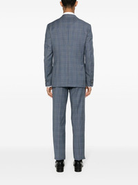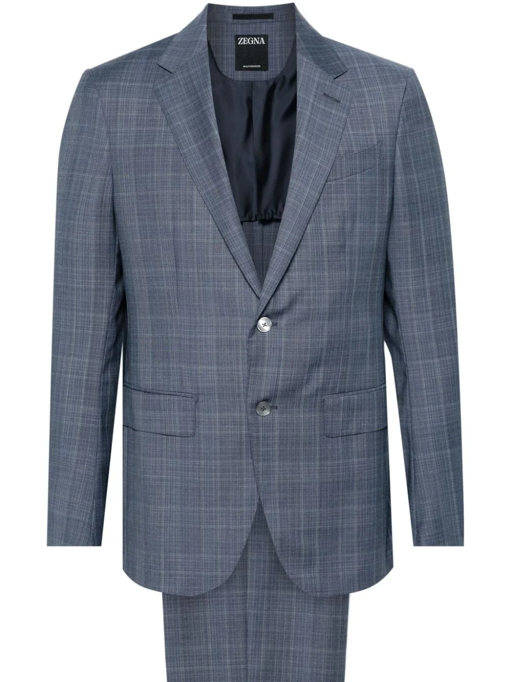 checked single-breasted suit Highlights - Cerulean blue - Wool - Check pattern - Blazer: - Notched lapels - Shoulder pads - Chest welt pocket - Long sleeves with buttoned cuffs - Logo patch at the sleeve - Dart detailing - Two side flap pockets - English rear vents - Multiple internal slip pockets - Partial lining - Straight hem - Front button fastening - Trousers: - Belt loops - Two side slash pockets - Pressed crease - Two rear button-fastening jetted pockets - Slim cut - Concealed front zip fastening - Off-centre front button fastening Imported Composition Lining: Viscose 100%, Cupro 100%, Cotton 50%, Modal 50% Outer: Wool 100% SIZE & FIT Model measurements Height 6 ft 2 in(1.87 m) Bust/Chest 38.18 in(97 cm) Hips 36.61 in(93 cm) Waist 29.13 in(74 cm) FittingInformation Tailored for a slim fit, offering a comfortable fit that sits just away from the body The unfinished hems allow for the length to be altered Made from a midweight non-stretch fabric This piece fits true to size – take your usual size Washing instructions Dry Clean Only