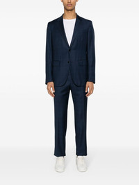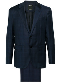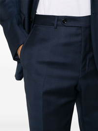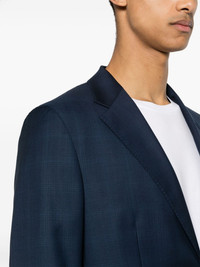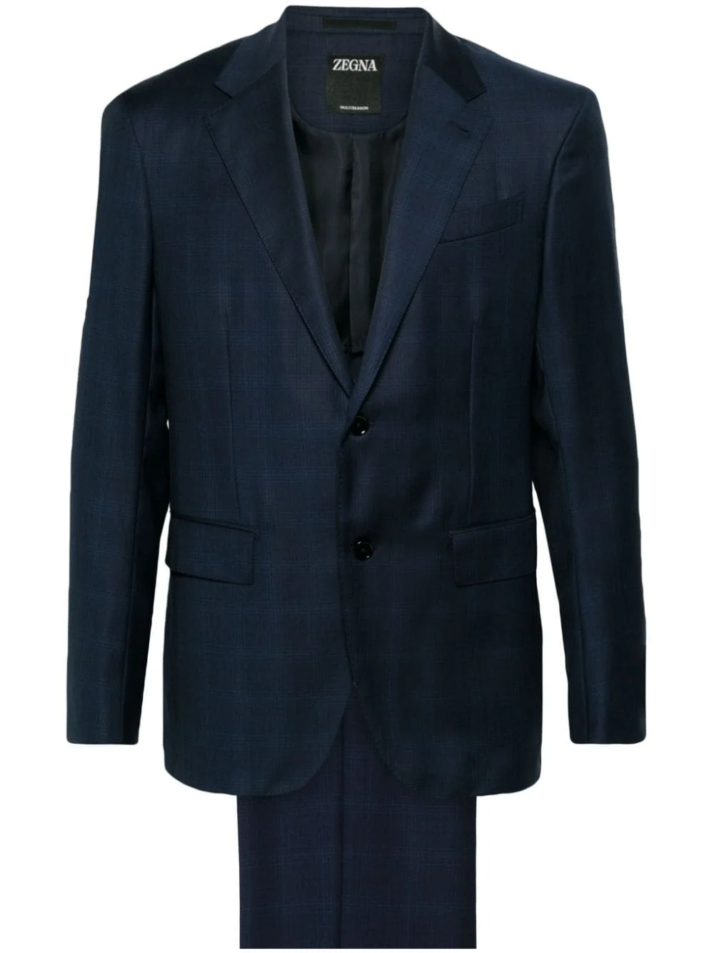 checked single-breasted suit Highlights - Navy blue - Wool - Check pattern - Blazer: - Notched lapels - Shoulder pads - Chest welt pocket - Long sleeves with buttoned cuffs - Logo patch at the sleeve - Dart detailing - Two side flap pockets - English rear vents - Multiple internal slip pockets - Partial lining - Straight hem - Front button fastening - Trousers: - Belt loops - Two side slash pockets - Pressed crease - Two rear button-fastening jetted pockets - Slim cut - Concealed front zip fastening - Off-centre front button fastening Imported Composition Outer: Wool 100% Lining: Viscose 100%, Cupro 100%, Cotton 50%, Modal 50% SIZE & FIT Model measurements Height 6 ft 2 in(1.87 m) Bust/Chest 38.18 in(97 cm) Hips 36.61 in(93 cm) Waist 29.13 in(74 cm) FittingInformation Tailored for a slim fit, offering a comfortable fit that sits just away from the body The unfinished hems allow for the length to be altered Made from a midweight non-stretch fabric This piece fits true to size – take your usual size Washing instructions Dry Clean Only