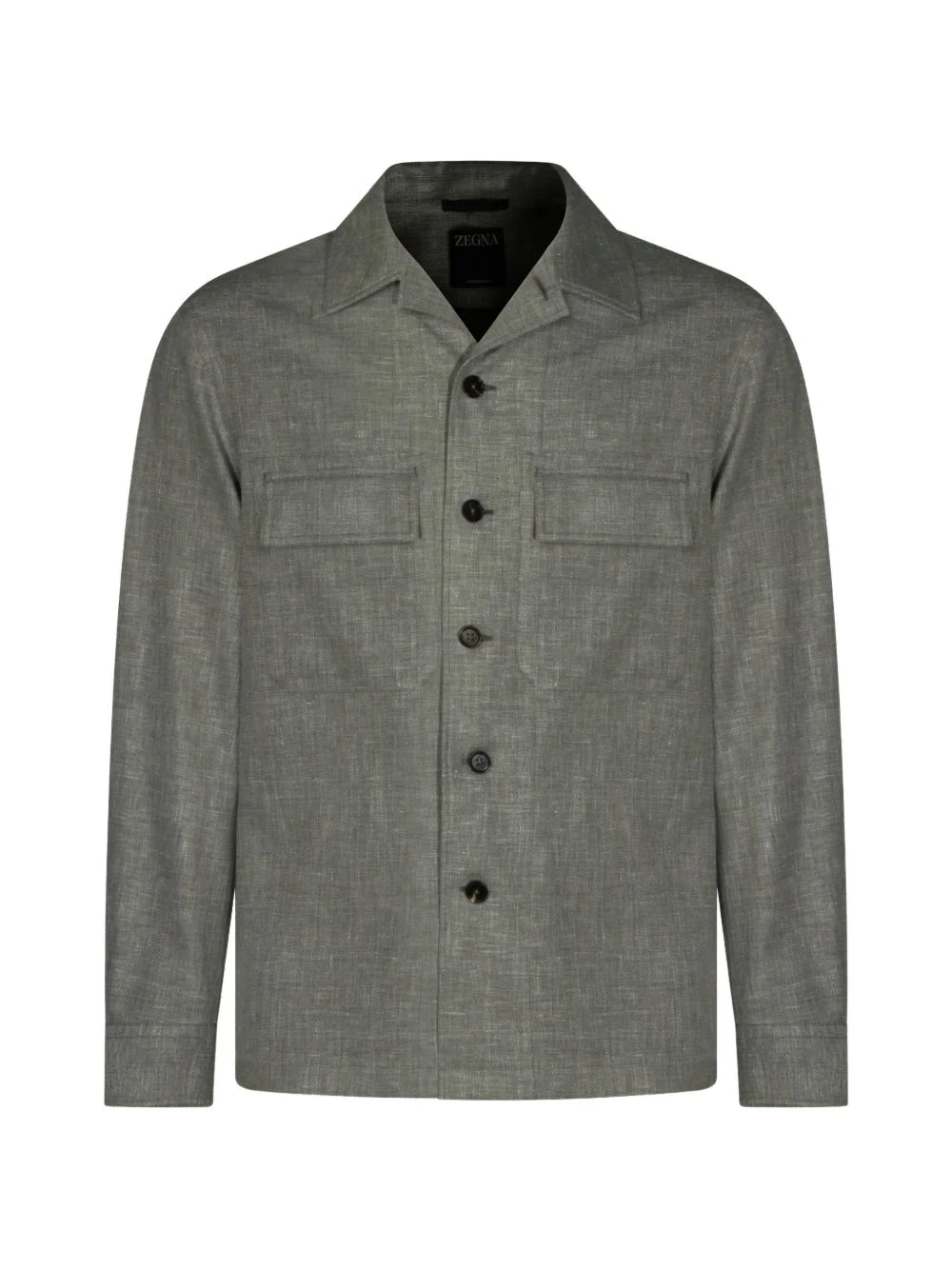 chest-pocket shirt jacket Highlights - Grey - Button fastening - Pointed collar - Long sleeves - Buttoned cuffs - Chest pockets Made in Italy Composition Linen/Flax 46%, Wool 31%, Silk 19%, Polyamide 3%, Elastane 1% Washing instructions Read Manufacturer Guidelines