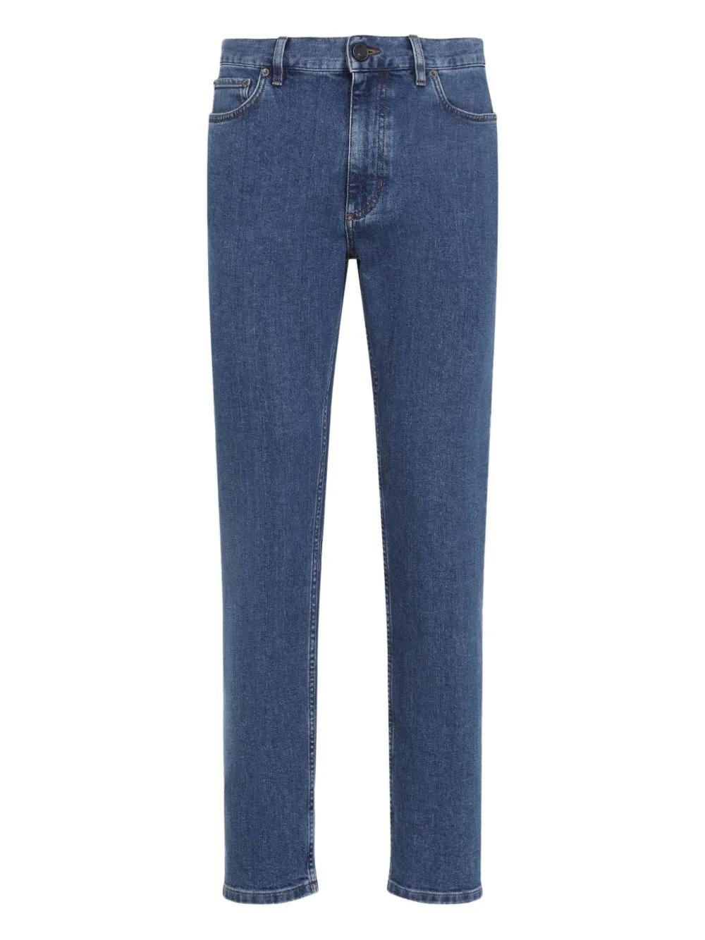 five-pocket jeans Highlights - Blue - Five pockets - Leather patch - Belt loops Made in Italy Composition Cotton 99%, Elastane 1% Washing instructions Read Manufacturer Guidelines