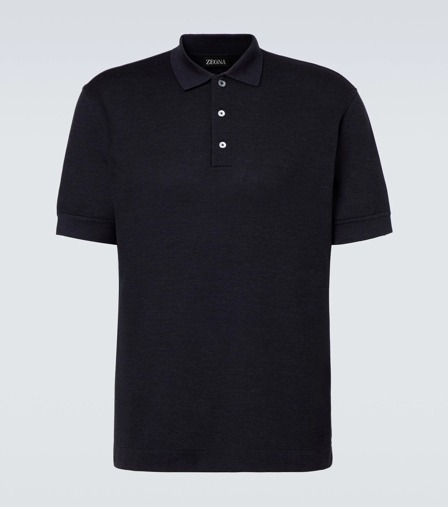 Renowned for creating some of the most beautiful fabrics in the world, Zegna remains a firm favorite among fashion’s cognoscenti. Made from cotton and silk, this piece has a classic fit – making it the perfect base layer for a host of looks. Product Details - Material: 75% cotton, 25% silk - Care instructions: hand wash - Made in Turkey - Designer color name: Navy Blue - Item color: blue - Trim: 50% cotton, 50% silk - Contains non-textile parts of animal origin - Collar: polo collar - Closure: buttoned placket - Side slits - Item number: P01057465 Size & Fit - True to size - Straight fit - Stretchy fabric - Falls below the hip - Height of model is 188cm-74" and wears a size IT 50