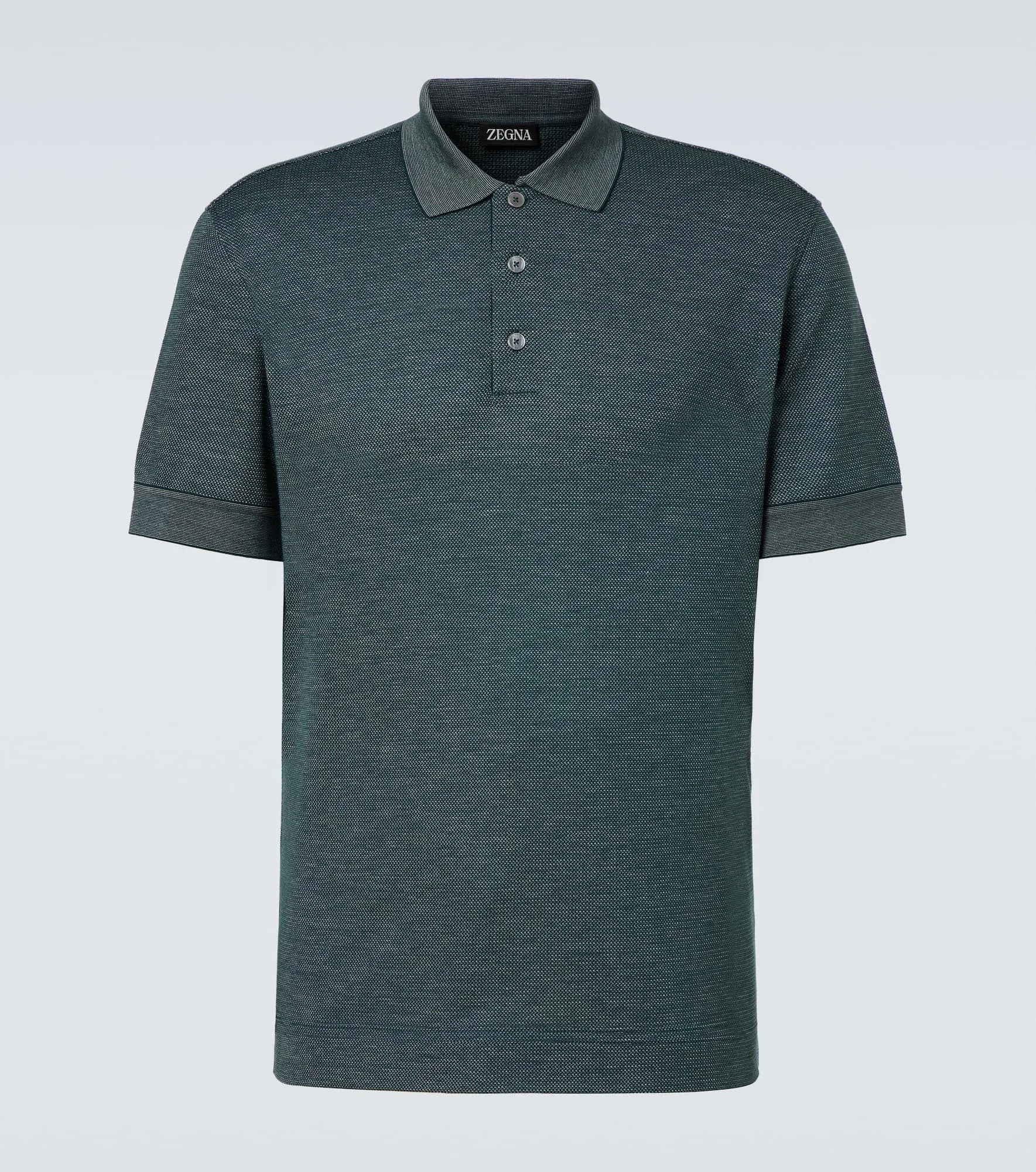 Renowned for creating some of the most beautiful fabrics in the world, Zegna remains a firm favorite among fashion’s cognoscenti. Made from cotton and silk, this piece has a classic fit – making it the perfect base layer for a host of looks. Product Details - Material: 75% cotton, 25% silk - Care instructions: hand wash - Made in Turkey - Designer color name: Dark Green - Item color: green - Trim: 50% cotton, 50% silk - Contains non-textile parts of animal origin - Collar: polo collar - Closure: buttoned placket - Side slits - Item number: P01057467 Size & Fit - True to size - Straight fit - Stretchy fabric - Falls below the hip - Height of model is 188cm-74" and wears a size IT 50