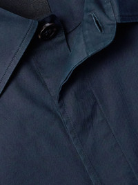 ZEGNA's overshirt is modelled after practical workwear styles. It's cut for a slightly loose fit from lightweight cotton-blend twill and features the signature 'Zegna 232 Road Brand Mark' at the back. Size & Fit - Those who are above 6'1"/ 185cm may wish to take the next size up - Designed for a slightly loose fit - Slightly short in the sleeves - Mid-weight, non-stretchy fabric - Model is shown wearing a L - Model measures: chest 38"/ 96cm, height 6'2"/ 188cm Details & Care - Navy cotton-blend twill - Button fastenings - 96% cotton, 4% elastane; trim: 100% leather (Calf)