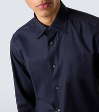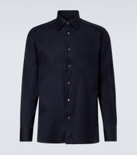 Established to create the world’s finest fabrics, Zegna is now the go-to brand for luxurious and innovative menswear. This shirt is crafted from a soft cotton blend and features a relaxed silhouette and a buttoned front. Product Details - Material: 96% cotton, 4% elastane - Care instructions: hand wash - Made in Italy - Designer color name: Navy Blue - Item color: blue - Contains non-textile parts of animal origin - Collar: classic (Straight point) - Closure: buttoned front - Cuff: buttoned - Item number: P01057704 Size & Fit - True to size - Without pleats in the back - Slim fit - Darts in the back - Non-stretchy fabric - Falls below the hip - The model in the picture is 185cm-6'1" and wearing a size EU 41