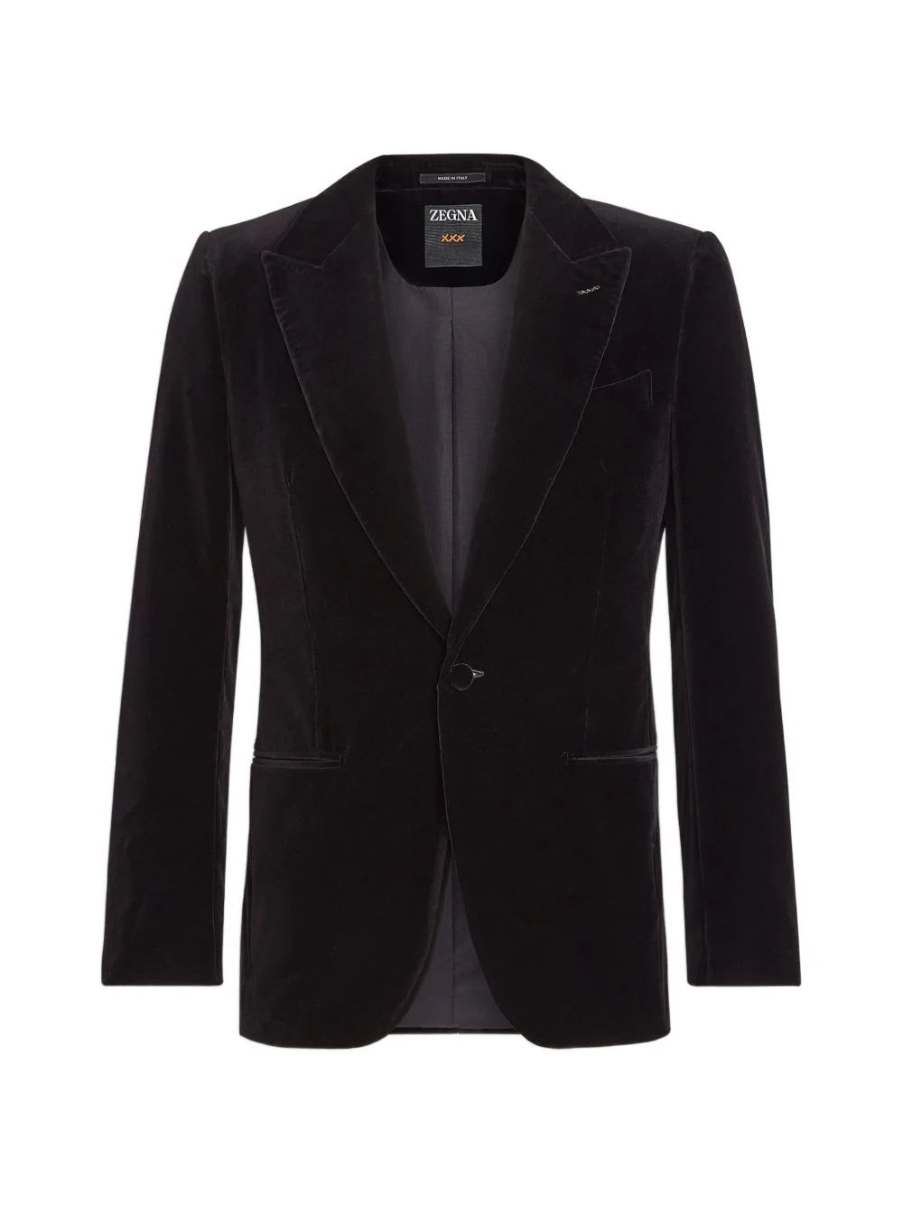 cotton buttoned blazer Highlights - Black - Peak lapels - Single-breasted - Front button fastening - Long sleeves - Chest welt pocket Imported Composition Cotton 100% Washing instructions Read Manufacturer Guidelines