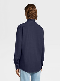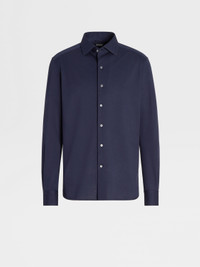 The navy blue pure cotton jersey long-sleeve shirt is a comfortable choice for everyday wear. INFO Update your business wardrobe with the navy blue pure cotton jersey long-sleeve shirt. Cotton jersey is perfect for busy days, thanks to its soft, breathable qualities. This crisp shirt is styled with a one-piece collar. PRODUCT CODE UBX18A5-SRO1-375 MATERIALS AND CARE 100% Cotton Hand wash (30°C / 85°F) or dry clean. Do not bleach. Do not tumble dry. Dry flat. Regular ironing, steam or dry, may be performed at low setting (110°C / 230°F). FIT AND PRODUCT DETAILS • Regular fit • Single piece collar • Standard cuffs • Button closure • 79 cm length on size 39