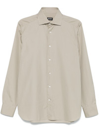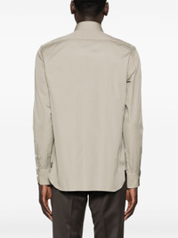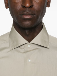 EXPERTLY CRAFTED FROM SOFT SAGE GREEN COTTON WITH A TEXTURED POPLIN FINISH, THIS SHIRT OFFERS A SOPHISTICATED AND TIMELESS LOOK. THE FRONT BUTTON FASTENING, CUTAWAY COLLAR, AND CURVED HEM PROVIDE A POLISHED AND VERSATILE STYLE, WHILE THE LONG SLEEVES WITH BUTTONED CUFFS ADD A TOUCH OF REFINEMENT. PERFECT FOR ANY OCCASION.
