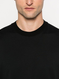 crew-neck short-sleeve t-shirt Highlights - Black - Short sleeves - Crew neck - Cotton - Straight hem - Regular fit Made in Italy Composition Cotton 70%, Silk 30% SIZE & FIT Model measurements Height 6 ft 2 in(1.87 m) Bust/Chest 37.79 in(96 cm) Hips 37.79 in(96 cm) Waist 30.31 in(77 cm) FittingInformation Designed for a relaxed fit, this piece allows for comfort and movement when worn Made from a midweight non-stretch fabric, this piece offers minimal elasticity when worn Washing instructions Hand Wash