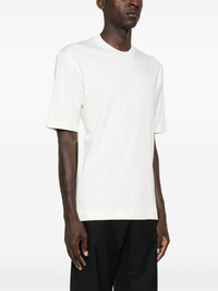 crew-neck T-shirt Highlights - White - Cotton-silk blend - Jersey texture - Crew neck - Short sleeves - Short side slits - Straight hem Made in Italy Composition Cotton 70%, Silk 30% SIZE & FIT Model measurements Height 6 ft 2 in(1.87 m) Bust/Chest 36.41 in(92.5 cm) Hips 37 in(94 cm) Waist 29.52 in(75 cm) FittingInformation Designed for a regular fit allowing for a comfortably loose fit throughout the body Made from a midweight non-stretch fabric, this piece offers minimal elasticity when worn