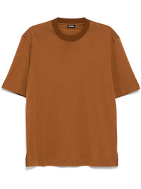 crew-neck T-shirt Highlights - Brown - Crew neck - Short sleeves - Short sleeves - Straight hem Made in Italy Composition Cotton 70%, Silk 30% SIZE & FIT Model measurements Height 6 ft 2 in(1.88 m) Bust/Chest 34.25 in(87 cm) Hips 34.64 in(88 cm) Waist 26.77 in(68 cm) FittingInformation Designed for a regular fit allowing for a comfortably loose fit throughout the body Made from a midweight non-stretch fabric, this piece offers minimal elasticity when worn